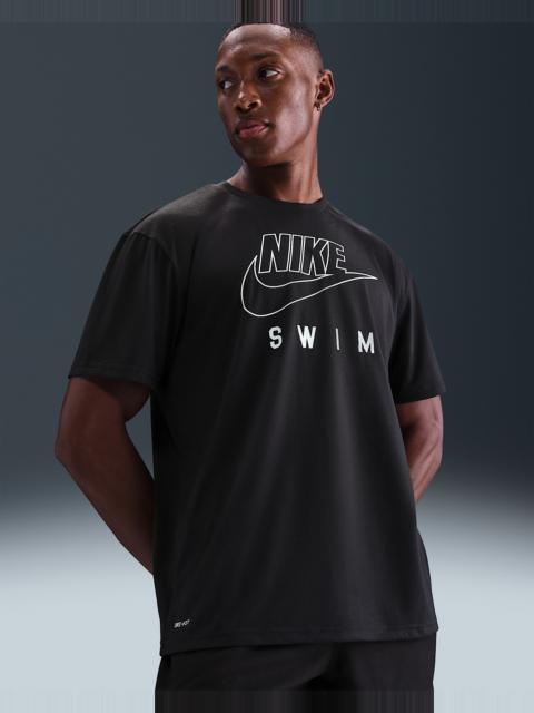 Rock all of our classic brand icons on one cool summer shirt. The soft jersey fabric's Nike Dri-FIT technology helps keep you dry and cool out of the water, while a relaxed fit helps keep you comfortable. Benefits - Nike Dri-FIT technology moves sweat away from your skin for quicker evaporation, helping you stay dry and comfortable. - Internal neck tape is soft against the skin while you conquer the sand, salt and sun. Product Details - UV Protection (UPF 40+) - This product provides UVA and UVB protection from the sun only in the areas covered by the garment. To protect exposed areas, the use of good quality sunscreen is recommended. - Heat Transfer Swoosh logo - 100% polyester - Wash and dry inside out. Do not use fabric softeners or dryer sheets. Machine wash cold separately. Use powder detergent. Do not bleach. Tumble dry low. Cool iron. Do not iron printed area. Do not dry clean. - Imported - Shown: Parachute Beige - Style: NESSF523-241 SIZE & FIT Model is wearing size M and is 6′1″185cm
