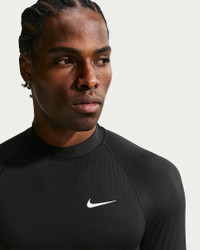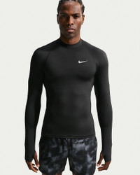 Waves are no match for you in the Nike Whitewater long-sleeve UV top. Designed to move with you, the rashguard is made of stretchy, sweat-wicking jersey in a tight fit. An ergonomic neckband, thumbholes and tether loop that locks into a drawcord help keep it in place. Benefits - Nike Dri-FIT technology moves sweat away from your skin for quicker evaporation, helping you stay dry and comfortable. - This product provides UVA and UVB protection (UPF40+) from the sun only in the areas covered by the garment. To protect exposed areas, the use of good quality sunscreen is recommended. - Durable, chlorine-resistant fabric offers lasting wear. - Flat seams help reduce chafing. Product Details - Tight Fit - Heat transfer Swoosh - Body: 84% recycled polyester 16% spandex - Machine wash cold - Shown: Black - Style: NESSG473-001 SIZE & FIT Model is wearing size M and is 6′4″192cm