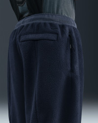 Armor for unpredictable conditions, these roomy, superwarm pants are built for taking on the city. They're engineered to stand up to the elements with heavy-duty fleece fabric and secure storage. Benefits - An elastic waistband and bolo drawcord let you clean up your fit and adjustments. - The open hem relaxes over your shoes. Product Details - Embroidered Nike Swoosh logo - Zippered hand pockets - Back snap pocket - Imported - Faux fur/Back of panels fabric: 100% polyester. Back of body fabric/Face of panels fabric: 100% cotton. - Machine wash - Shown: Thunder Blue/Obsidian/Black - Style: IB3365-437 SIZE & FIT Model is wearing size M and is 6′2″188cm Oversized fit: exaggerated and spacious