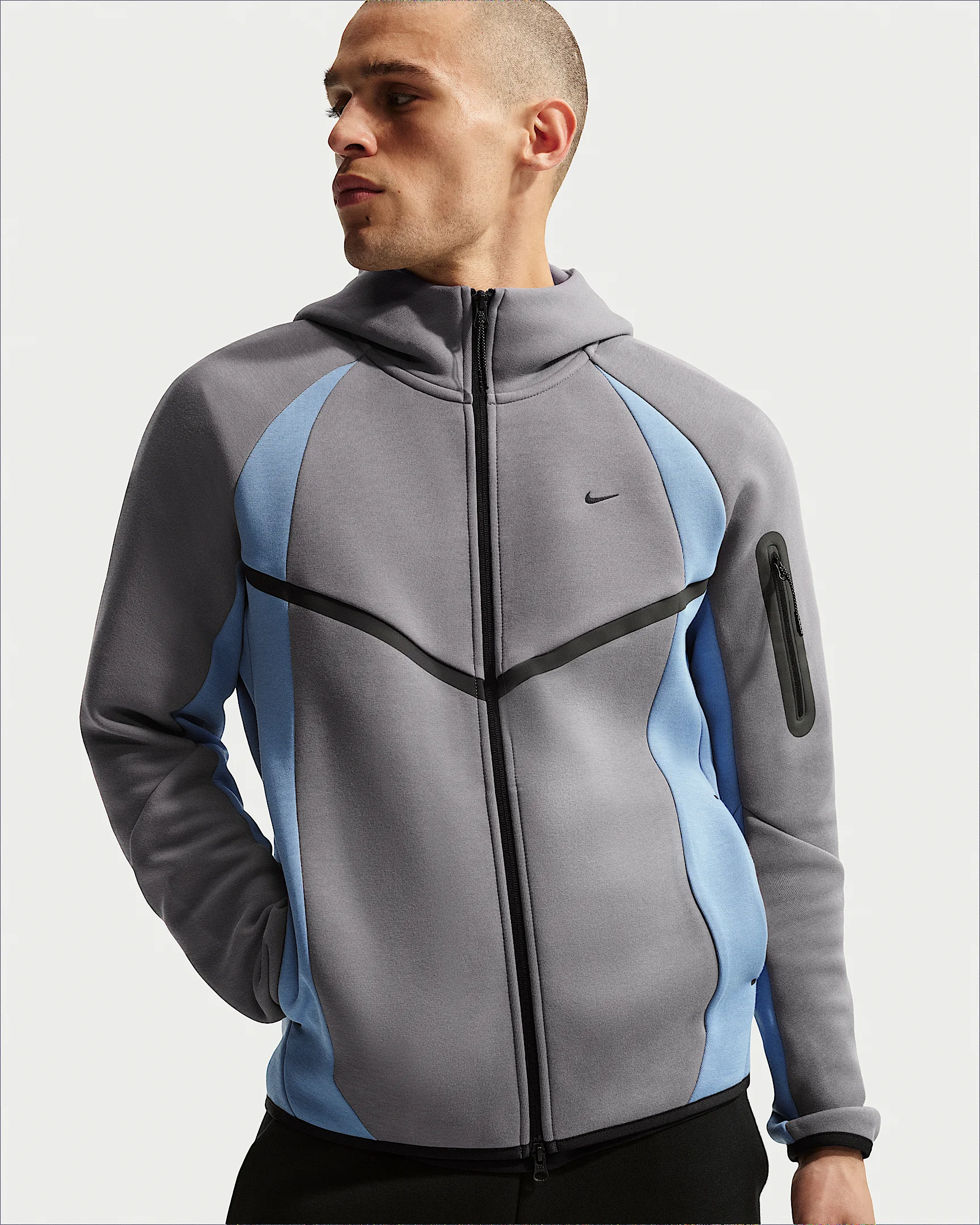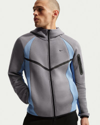 Iconic Nike Windrunner style gets an injection of premium comfort with our smooth-on-both-sides fleece. It's paired with a relaxed fit and technical details, like a signature tape-reinforced Tech pocket on the sleeve and binding at the hem and cuffs. Product Details - Embroidered logo - 2-way zipper - Hand pockets - Body: 53% cotton/47% polyester. Pocket bags: 100% cotton. Hood lining: 53% cotton/47% polyester. - Machine wash - Imported - Shown: Pencil Point/Work Blue/Black - Style: IF1325-015 SIZE & FIT Model is wearing size M and is 6'1"185cm Standard fit: easy and traditional