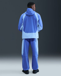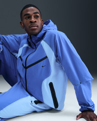 This color-block version of the iconic Tech Windrunner is crafted with cool and crinkly nylon blended fabric that's sweat wicking and slightly stretchy. A relaxed fit, articulation at the elbows and an adjustable full-coverage hood provide comfortable coverage. Benefits - Nike Dri-FIT technology moves sweat away from your skin for quicker evaporation, helping you stay dry and comfortable. - Articulation at the elbows allows ease of movement while serving a distinct Nike Tech aesthetic. - Bungees with cord locks at the hood and hem help you lock in the right fit. - Signature Tech tape-reinforced hand pockets offer storage for your small essentials. Product Details - Embroidered Nike Swoosh logo - Three-panel hood - Reflective stitches on sleeves - Two-way zipper - Locker loop - Not intended for use as Personal Protective Equipment (PPE) - Body: 94% nylon/6% spandex. Pocket bags: 100% polyester. - Machine wash - Imported - Shown: Comet Blue/Aluminum/Black - Style: IH8461-411 SIZE & FIT Model is wearing size M and is 6′2″188cm Loose fit: roomy and relaxed