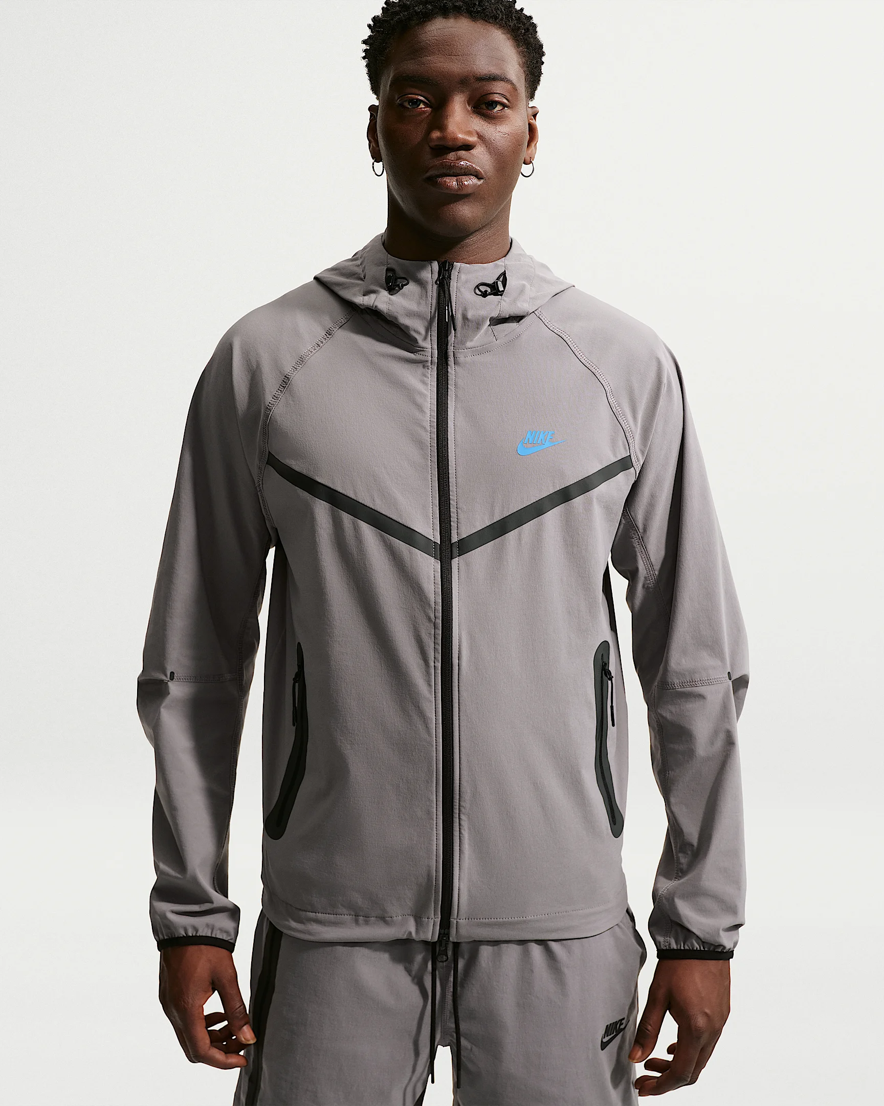 Nike Tech infused with a dose of Nike Heritage. This roomy jacket is crafted with cool and crinkly nylon fabric that's sweat wicking and slightly stretchy. Chevron design lines are inspired by the historic Nike Windrunner track jacket while articulation at the elbows grounds it in a distinct Nike Tech aesthetic. Benefits - Adjustable drawcord and cordlock at the hem and hood let you switch up your fit and coverage. - Roomy fit through the body makes it an easy layer. Product Details - Two-way zipper - Zippered hand pockets - Body: 94% nylon/6% spandex. Pocket bags: 100% polyester. - Machine wash - Imported - Shown: Pencil Point/Pencil Point/Blue Crystal - Style: IU6965-015 SIZE & FIT Model is wearing size M and is 6′3″189cm Loose fit: roomy and relaxed