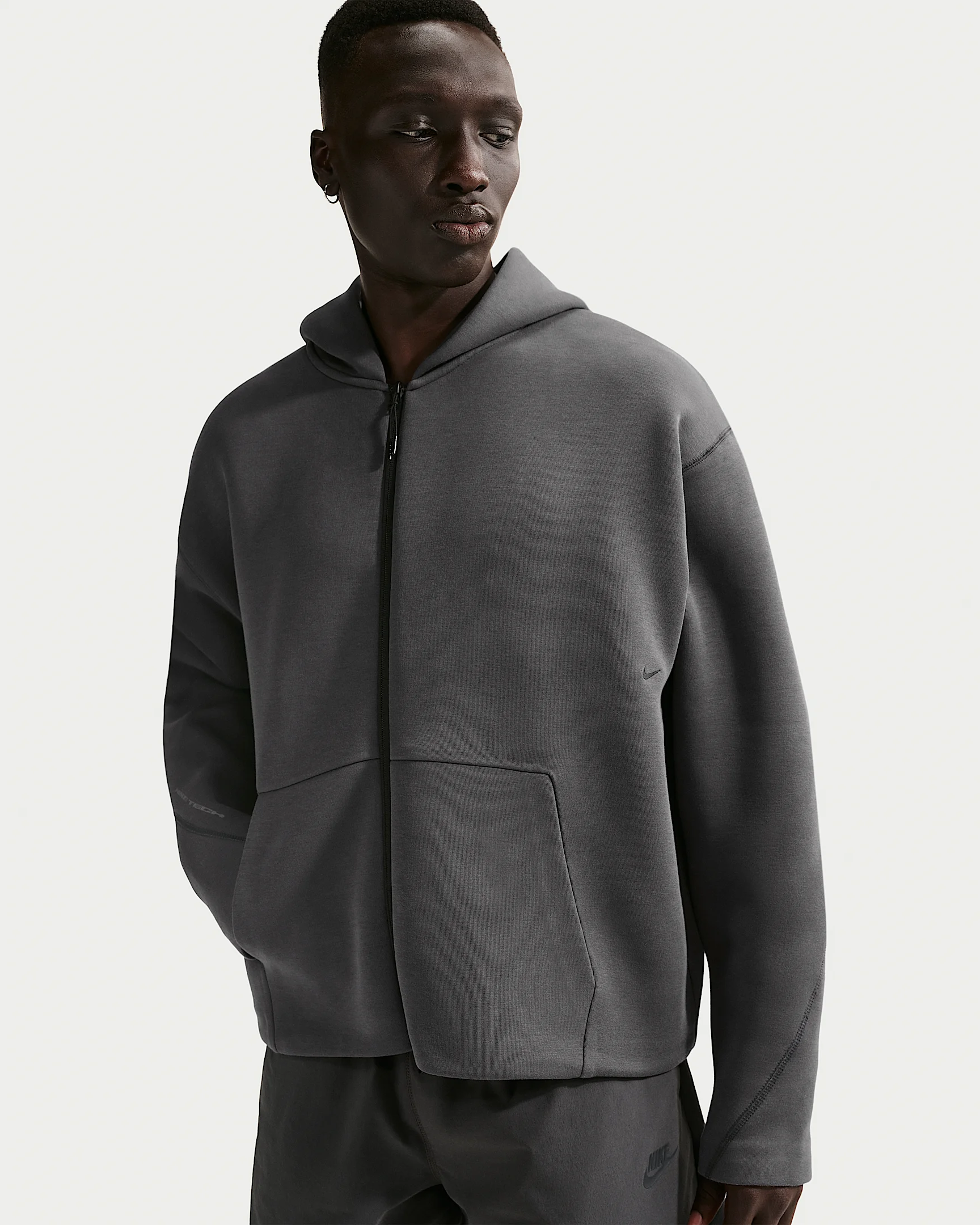 This hoodie is crafted with the thickest and warmest version of our premium, smooth-on-both-sides fleece. It has an extra roomy fit with sculpted articulation for a distinct Nike Tech aesthetic. Benefits - Drawcord at hem lets you switch up the fit at your waist. - Grommets add breathability. Product Details - Embroidered logo - Reflective details - Separated pouch pocket - Body: 62% polyester/38% cotton. Pocket bag palm side: 69% cotton/31% polyester. Hood lining: 62% polyester/38% cotton. - Machine wash - Imported - Not intended for use as Personal Protective Equipment (PPE) - Shown: Anthracite/Black - Style: IF1319-060 SIZE & FIT Model is wearing size M and is 6′0″183cm Oversized fit: exaggerated and spacious