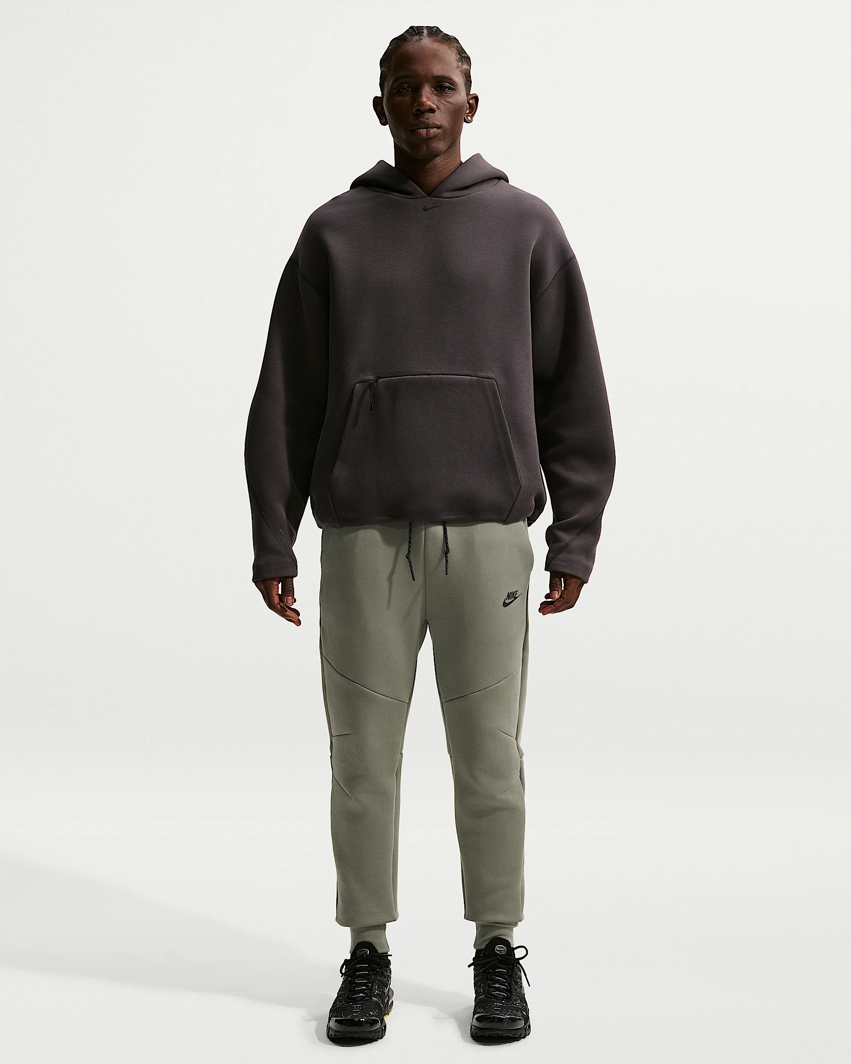 These classic Tech Fleece Joggers offer polished warmth and comfort made with our premium, low-bulk fleece. Tall cuffs let you show off your kicks. Benefits - Our premium, smooth-on-both-sides fleece feels warmer and softer than ever, while keeping the same lightweight build you love. - Roomy through the thigh, this tapered design narrows at the knee to give you a comfortable feel without losing the clean, tailored look - Articulated seems, a taped Tech pocket and the Futura logo let you know it's classic Tech Fleece. - Designed to fit slim through the legs and seat for a clean, polished look. Product Details - Hand pockets - Elastic waistband with external drawcord - Body: 53% cotton/47% polyester. Pocket Bag: 100% cotton. - Machine wash - Imported - Shown: Silver Sage/Light Pumice/Black - Style: HV0959-328 SIZE & FIT Model is wearing size M and is 6′1″185cm Sm fit: sleek and tailored 78 length: hits at ankle