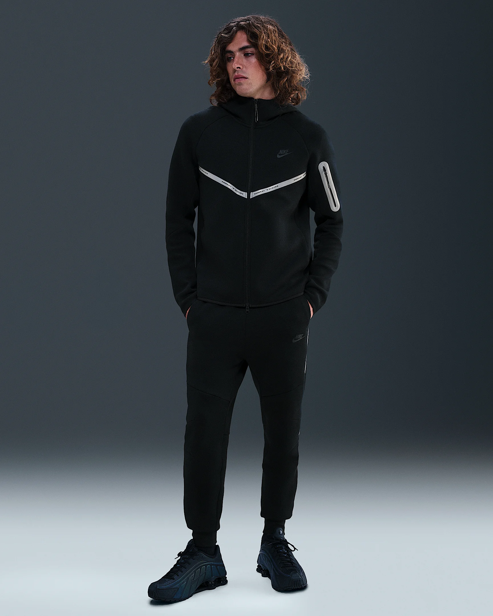 Our Tech Fleece pants offer an injection of premium comfort with our smooth-on-both-sides fleece. These pants have a slim fit and a tall cuff that rests above your shoes. Benefits - Our premium, smooth-on-both-sides fleece brings top-tier softness and warmth without bulk. - Designed to fit slim through the legs and seat for a clean, polished look. Product Details - Embroidered Nike Swoosh logo - Reflective Nike Tech accents - Not intended for use as Personal Protective Equipment (PPE) - Elastic waistband with drawcord - Body: 53% cotton/47% polyester. Pocket bag knuckle side: 100% cotton. - Machine wash - Imported - Shown: Black/Black - Style: IM6540-010 SIZE & FIT Model is wearing size M and is 5′11″180cm Sm fit: sleek and tailored 78 length: hits at ankle