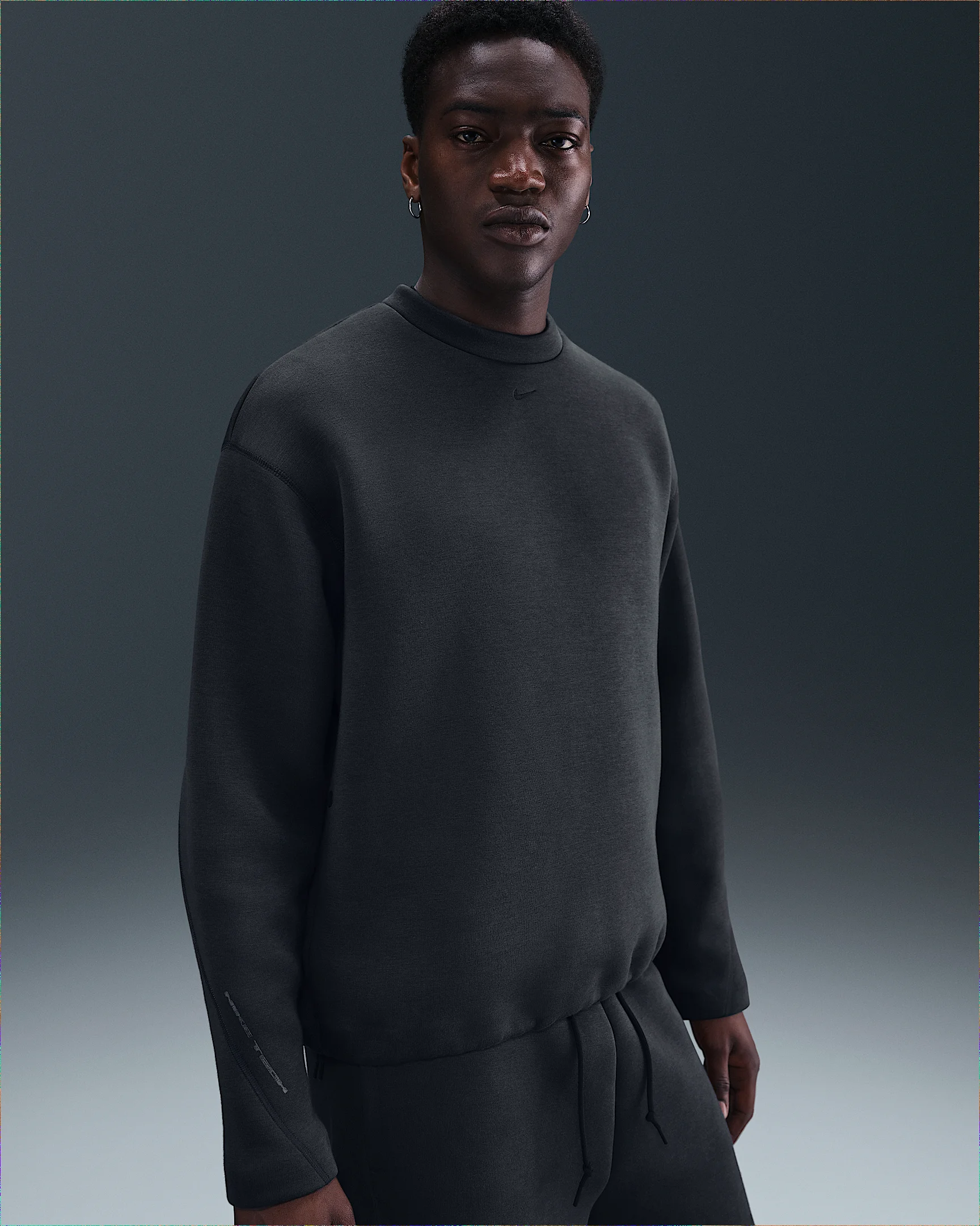 We took our iconic smooth-on-both-sides fleece and delivered a heavyweight version that's our thickest and warmest yet. It's paired with a loose fit and technical details, like vent grommets at the sides. Benefits - This crew is made with the thickest and warmest version yet of our premium, smooth-on-both-sides fleece. - An elastic drawcord and cord lock at the hem makes dialing in your fit a breeze. - Vent grommets help keep heat and humidity from getting out of control. - The loose fit feels roomy through the body for easy movement and layering. Product Details - Embroidered Nike Swoosh logo - Reflective stitches at sleeves - Locker loop - Not intended for use as Personal Protective Equipment (PPE) - 62% polyester/38% cotton - Machine wash - Imported - Shown: Anthracite/Black - Style: HV6537-060 SIZE & FIT Model is wearing size M and is 6′3″189cm Loose fit: roomy and relaxed