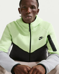 Iconic Nike Windrunner style gets an injection of premium comfort with our smooth-on-both-sides fleece. It's paired with a relaxed fit and technical details, like a signature tape-reinforced Tech pocket on the sleeve and binding at the hem and cuffs. Benefits - Our premium, smooth-on-both-sides fleece brings top-tier softness and warmth without bulk. - The standard fit is designed to feel relaxed through the body for easy layering. Product Details - Hand pockets - Zippered sleeve pocket - Body: 53% cotton/47% polyester. Pocket bag knuckle side: 100% cotton. Hood lining: 53% cotton/47% polyester. - Machine wash - Imported - Shown: Light Liquid Lime/Anthracite/Light Smoke Grey/Black - Style: HV0949-361 SIZE & FIT Model is wearing size M and is 6′1″185cm Standard fit: easy and traditional