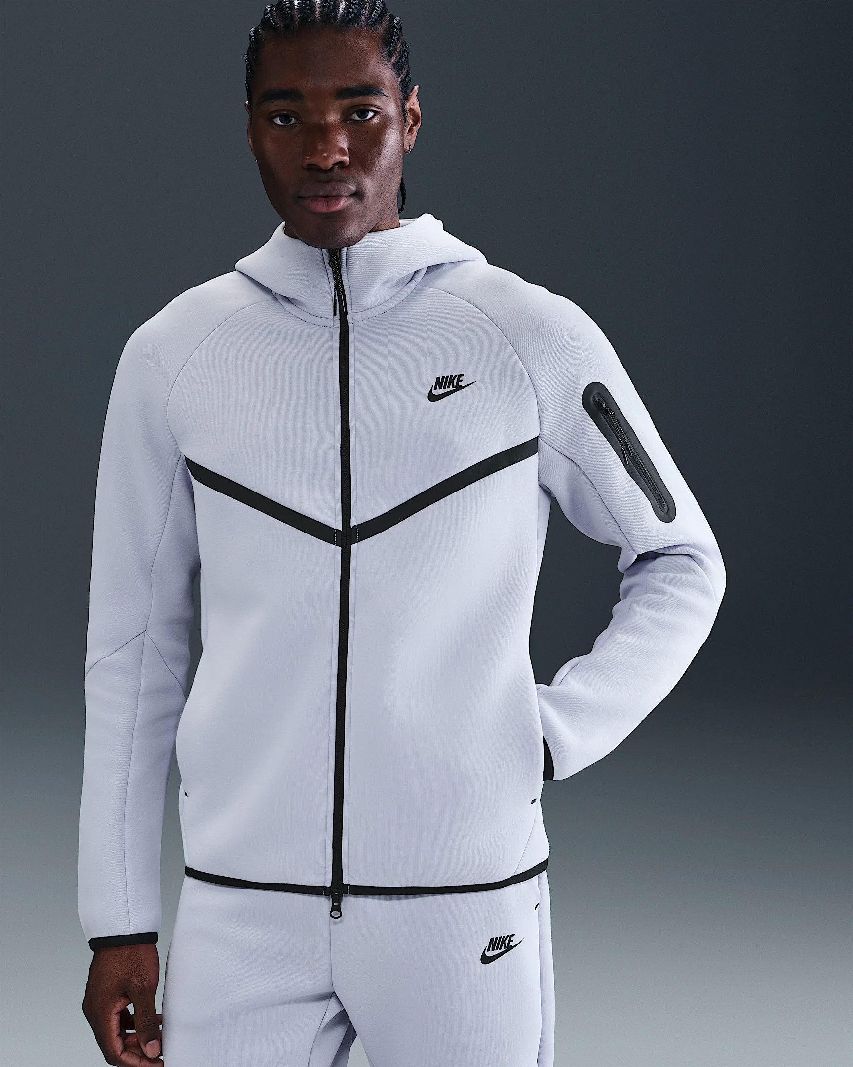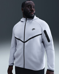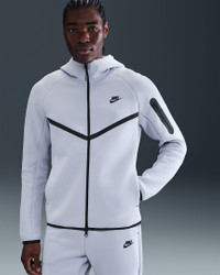 The iconic Tech Fleece Windrunner Hoodie is back. This version has the utility sleeve pocket, hem and cuff binding, and taped chevron that made the original stand out in the streets. Benefits - Our premium, smooth-on-both-sides fleece feels warmer and softer than ever, while keeping the same lightweight build you love. - The standard fit is designed to feel relaxed through the body for easy layering. Product Details - Hand pockets - Zippered sleeve pocket - Body: 53% cotton/47% polyester. Pocket Bag Knuckle Side: 100% cotton. Hood Lining: 53% cotton/47% polyester. - Machine wash - Imported - Shown: Ghost/Black - Style: HV0949-030 SIZE & FIT Model is wearing size M and is 6′2″188cm Standard fit: easy and traditional