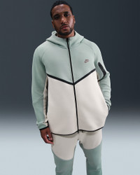 The iconic Tech Fleece Windrunner Hoodie is back. This version has the utility sleeve pocket, hem and cuff binding, and taped chevron that made the original stand out in the streets. Benefits - Our premium, smooth-on-both-sides fleece feels warmer and softer than ever, while keeping the same lightweight build you love. - The standard fit is designed to feel relaxed through the body for easy layering. Product Details - Hand pockets - Zippered sleeve pocket - Body: 53% cotton/47% polyester. Pocket Bag Knuckle Side: 100% cotton. Hood Lining: 53% cotton/47% polyester. - Machine wash - Imported - Shown: Dusty Sage/Light Orewood Brown/Plum Eclipse - Style: HV0949-020 SIZE & FIT Model is wearing size M and is 6′1″185cm Standard fit: easy and traditional