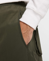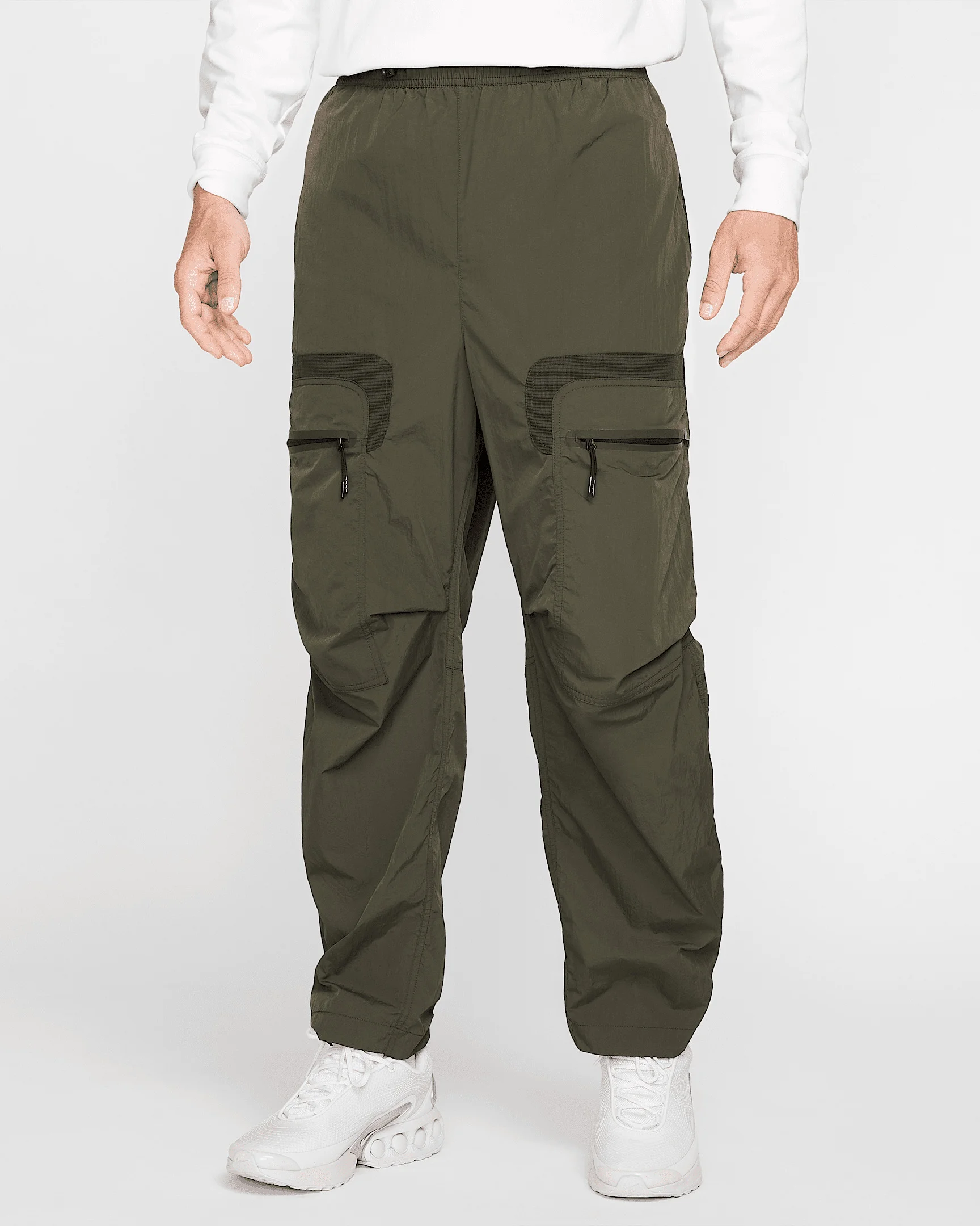 We crafted these roomy, utility-inspired pants with a lightweight woven nylon that repels water and UV rays. The clean lines and distinct details serve a fresh Nike Tech aesthetic. Benefits - Loose fit feels roomy through the seat and thighs for easy movement and casual styling. - Extra volume and articulation at the knees allows ease for movement. - Straps on the lower legs allow you to customize the length. - An elastic waistband with a bungee cord locks lets you dial in the fit. - Oversize, zippered cargo pockets, snap secure back pockets and hand pockets help keep items secure. - This product provides UVA and UVB protection from the sun only in the areas covered by the garment. To protect exposed areas, the use of good quality sunscreen is recommended. Product Details - Embroidered Nike Swoosh logo - Breathable mesh grommets - 100% nylon - Machine wash - Imported - Shown: Sequoia/Black - Style: HJ2940-355 SIZE & FIT Model is wearing size L and is 6′2″188cm Loose fit: roomy and relaxed