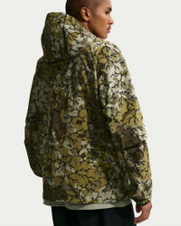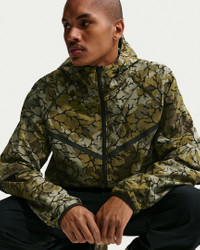 Nike Tech infused with a dose of Nike Heritage. This roomy jacket is crafted with cool and crinkly nylon fabric that's sweat wicking and slightly stretchy. Chevron design lines are inspired by the historic Nike Windrunner track jacket while articulation at the elbows grounds it in a distinct Nike Tech aesthetic. Benefits - Adjustable drawcord and cordlock at the hem and hood let you switch up your fit and coverage. - Relaxed fit has a traditional look. Product Details - Embroidered logo - Two-way zipper - Zippered hand pockets - Body: 94% nylon/6% spandex. Pockets: 100% polyester. - Machine wash - Imported - Shown: Olive Flak/Black - Style: IF0915-368 SIZE & FIT Standard fit: easy and traditional
