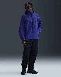 Crafted with stretchy, breathable material, the Nike Tech Woven Jacket offers you ease of movement and adjustable details. Bungee cords with cord locks create a custom fit at the hem and hood. Benefits - Lightweight fabric moves sweat away from your skin for quick evaporation, helping you stay dry and comfortable. - Loose fit through the body allows a full range of movement. - Articulated elbows are made with movement in mind, and add a distinct Nike Tech aesthetic. - Hood and stand collar offer coverage from the elements. - Two-way zipper lets you adjust your fit. - Bungee cords with cord locks create a custom fit at the hem and hood. Product Details - Nike Futura logo - Body: 94% nylon/6% spandex. Pockets: 100% polyester. - Machine wash - Imported - Shown: Deep Night/Deep Night/Black - Style: HM7151-539 SIZE & FIT Model is wearing size M and is 6′1″185cm Big & Tall model is wearing size 3XL and is 6'5"196cm Loose fit: roomy and relaxed Fits large; we recommend ordering a size down