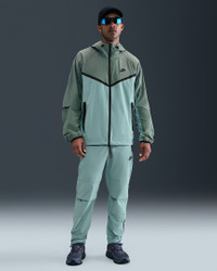 Crafted with stretchy, breathable material, the Nike Tech Woven Jacket offers you ease of movement and adjustable details. Bungee cords with cord locks create a custom fit at the hem and hood. Benefits - Lightweight fabric moves sweat away from your skin for quick evaporation, helping you stay dry and comfortable. - Loose fit through the body allows a full range of movement. - Articulated elbows are made with movement in mind, and add a distinct Nike Tech aesthetic. - Hood and stand collar offer coverage from the elements. - Two-way zipper lets you adjust your fit. - Bungee cords with cord locks create a custom fit at the hem and hood. Product Details - Nike Futura logo - Body: 94% nylon/6% spandex. Pockets: 100% polyester. - Machine wash - Imported - Shown: Cannon/Clay Green/Black - Style: HM7151-018 SIZE & FIT Loose fit: roomy and relaxed Fits large; we recommend ordering a size down