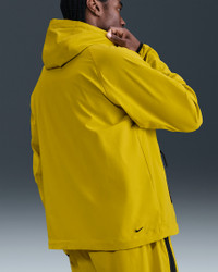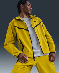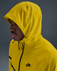 Crafted with stretchy, breathable material, the Nike Tech Woven Jacket offers you ease of movement and adjustable details. Bungee cords with cord locks create a custom fit at the hem and hood. Benefits - Lightweight fabric moves sweat away from your skin for quick evaporation, helping you stay dry and comfortable. - Loose fit through the body allows a full range of movement. - Articulated elbows are made with movement in mind, and add a distinct Nike Tech aesthetic. - Hood and stand collar offer coverage from the elements. - Two-way zipper lets you adjust your fit. - Bungee cords with cord locks create a custom fit at the hem and hood. Product Details - Nike Futura logo - Body: 94% nylon/6% spandex. Pockets: 100% polyester. - Machine wash - Imported - Shown: Bright Citron/Bright Citron/Black - Style: HM7151-726 SIZE & FIT Model is wearing size M and is 6′2″188cm Loose fit: roomy and relaxed Fits large; we recommend ordering a size down
