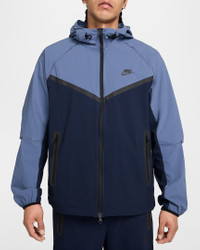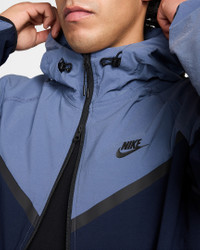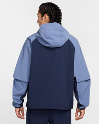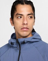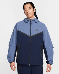 Crafted with stretchy, breathable material, the Nike Tech Woven Jacket offers you ease of movement and adjustable details. Bungee cords with cord locks create a custom fit at the hem and hood. Benefits - Lightweight fabric moves sweat away from your skin for quick evaporation, helping you stay dry and comfortable. - Loose fit through the body allows a full range of movement. - Articulated elbows are made with movement in mind, and add a distinct Nike Tech aesthetic. - Hood and stand collar offer coverage from the elements. - Two-way zipper lets you adjust your fit. - Bungee cords with cord locks create a custom fit at the hem and hood. Product Details - Nike Futura logo - Body: 94% nylon/6% spandex. Pockets: 100% polyester. - Machine wash - Imported - Shown: Obsidian/Diffused Blue/Black - Style: HM7151-452 SIZE & FIT Model is wearing size M and is 6′1″185cm Loose fit: roomy and relaxed Fits large; we recommend ordering a size down