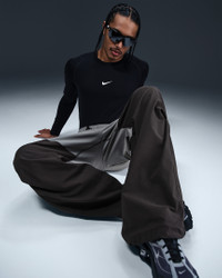 Crafted with stretchy woven material, these Nike Tech pants offer you ease of movement and adjustability. The wide-leg cut is paired with bungee locks at the ankles that let you switch up the fit. Benefits - Lightweight fabric moves sweat away from your skin for quick evaporation, helping you stay dry and comfortable. - Oversized fit offers plenty of space through the thighs and legs. - Articulated knees are made with movement in mind, and add a distinct Nike Tech aesthetic. - Stretchy elastic waistband with bungee drawcord provides a custom fit. Product Details - Nike Futura logo - Extralong taped Tech pocket - Hand pocket on the left - Body: 94% nylon/6% spandex. Pocket Bags: 100% polyester. - Machine wash - Imported - Shown: Cool Grey/Anthracite/Black - Style: HM7158-065 SIZE & FIT Model is wearing size M and is 6′1″185cm Big & Tall model is wearing size 3XL and is 6'5"196cm Standard fit: easy and traditional 78 length: hits at ankle Fits large; we recommend ordering a size down