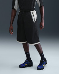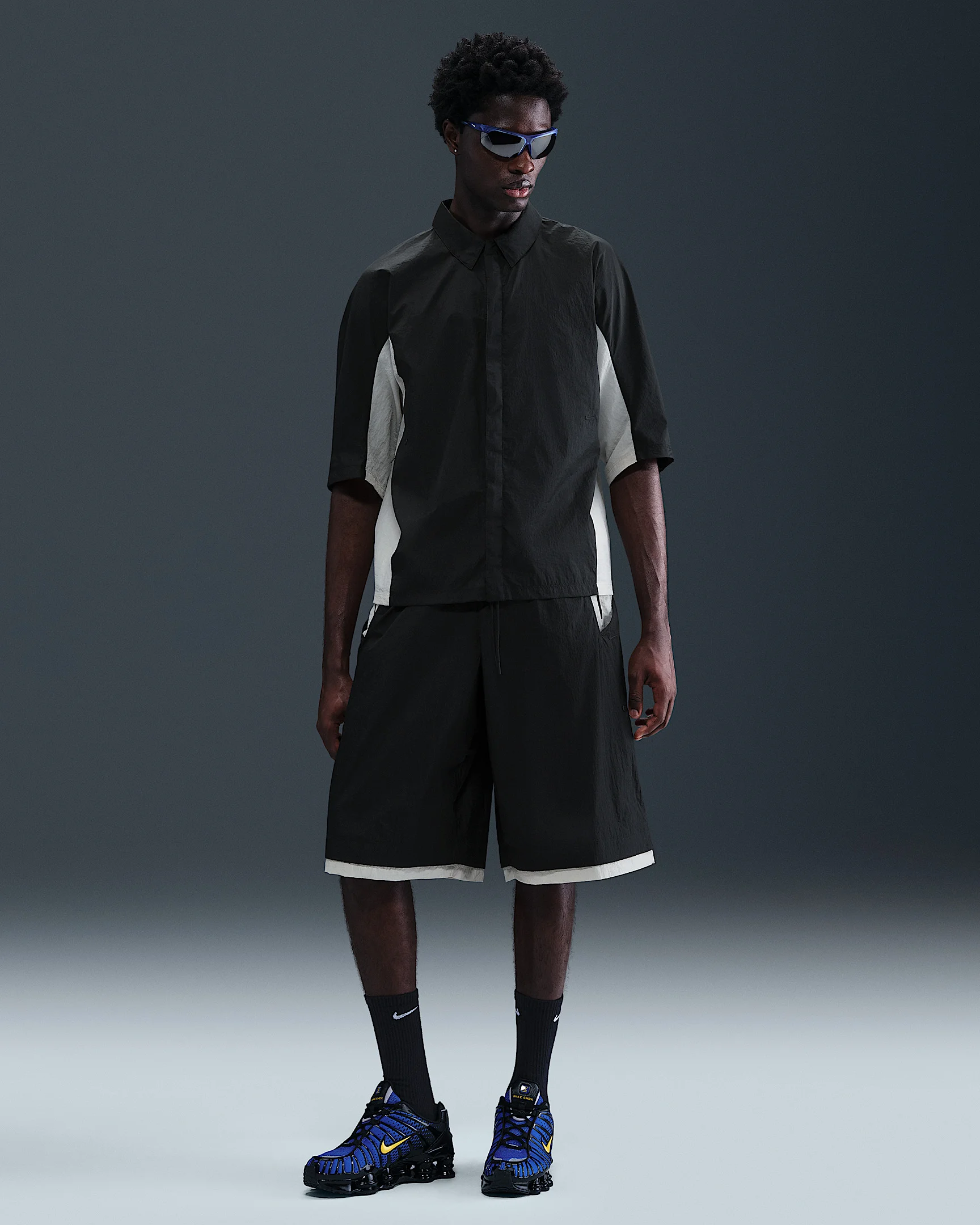 These lightweight Tech woven shorts are crafted with crisp ripstop fabric with a crinkled finish. The exaggerated, oversized fit hits below the knees. Benefits - The oversized fit is extra spacious through the seat and thighs, with an extra-long inseam that hits below the knees. - An elastic waistband with a bolo drawcord lets you find the right fit. Product Details - Embroidered Nike Swoosh logo - Zippered hand pockets - Zippered back pocket - Metal mesh grommets - 100% nylon - Machine wash - Imported - Shown: Black/Light Bone/Black - Style: IF8259-010 SIZE & FIT Model is wearing size M and is 6′1″185cm Loose fit: roomy and relaxed