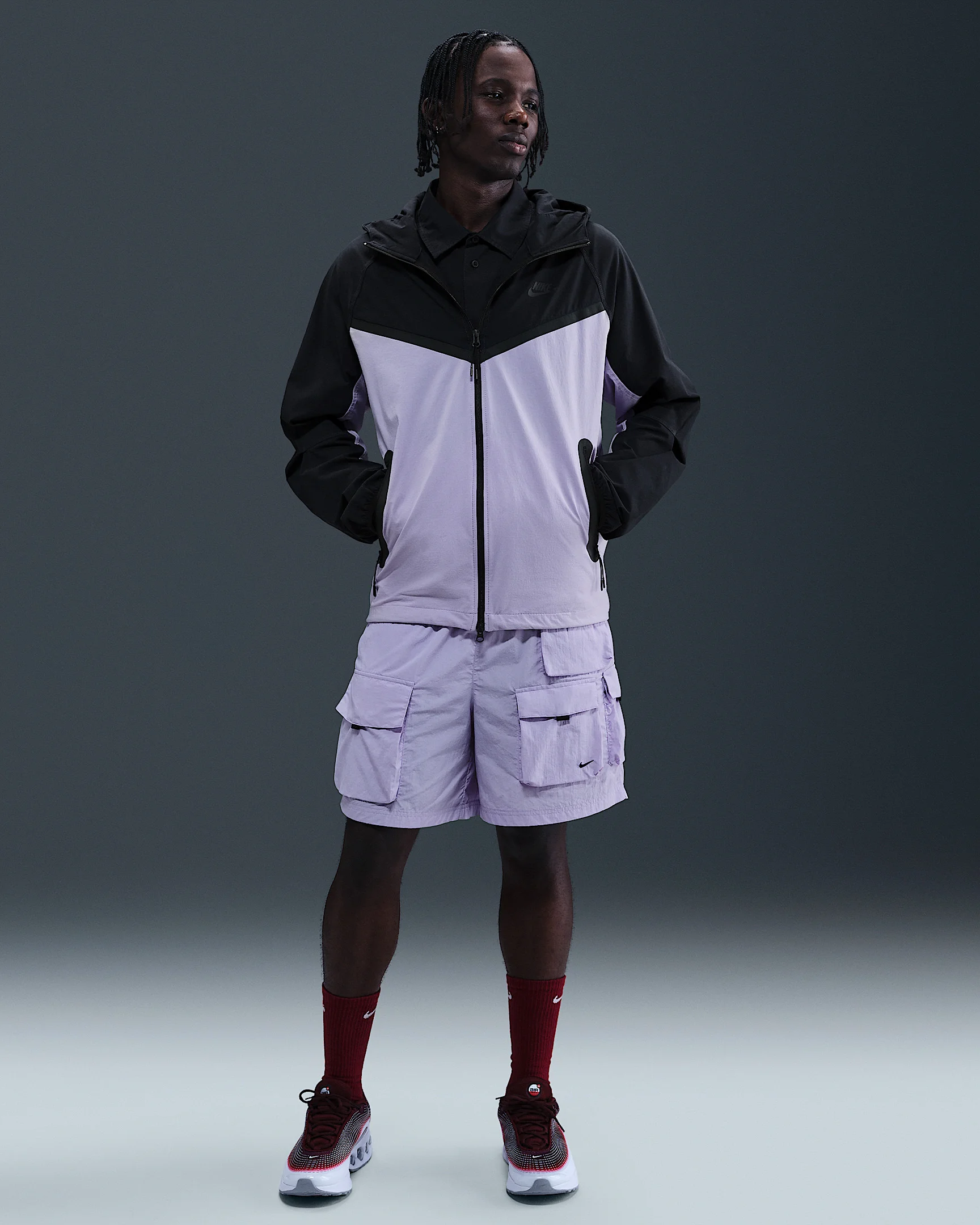 Utility shorts just got even more functional. We piled on pockets, added water-repellent and UV-protecting fabric and a roomy fit that encourages comfortable movement. Benefits - The loose fit feels roomy through the seat and thighs for easy movement and casual styling. - These shorts pack pockets—including five secure pockets—into an innovative layout. - An elastic waistband and external knotted drawcord lets you clean up your fit and adjustments. - This product provides UVA and UVB protection from the sun only in the areas covered by the garment. To protect exposed areas, the use of good quality sunscreen is recommended. Product Details - Embroidered Nike Swoosh logo - 100% nylon - Machine wash - Imported - Shown: Hydrangeas/Black - Style: HJ0677-515 SIZE & FIT Loose fit: roomy and relaxed