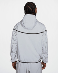 Step into the spotlight. We made this lightweight Nike Tech jacket with ultra-reflective ripstop material and a clean aesthetic to help you stand out. Benefits - Loose fit feels roomy through the body for easy movement and layering. - Articulation cuts at the elbows are made with movement in mind, and add a distinct Nike Tech aesthetic. - Two-way zipper lets you adjust your fit. - Three-panel hood offers coverage from the elements. Product Details - Nike Futura logo - Elastic binding at cuffs and hem - Zippered hand pockets - Body: 100% nylon. Pocket Bags: 100% polyester - Do not wash - Imported - Reflective details - Not intended for use as Personal Protective Equipment (PPE) - Shown: Reflect Silver/Black - Style: FZ7585-035 SIZE & FIT Model is wearing size M and is 6′2″188cm Loose fit: roomy and relaxed