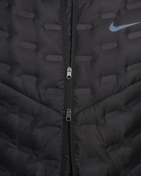Cold weather shouldn't stop your run. That's why our designers created this insulated, sweat-wicking running jacket. Nike Therma-FIT ADV technology combines heat-regulating fabric with advanced engineering and features to help keep you warm in cold-weather conditions. Plus, the fabric has a durable coating to help shed water. A packable hood gives you options—whether you need it for those short jogs or long runs on the weekend. Product Details - Reflective elements - Full-length zipper - Body/lining/Panels fill: 100% polyester. Mesh: 92% polyester/8% spandex. Front panel fill: 85% Down/15% Feathers. - Machine wash - Imported - Not intended for use as Personal Protective Equipment (PPE) - Shown: Black - Style: FB7556-010 SIZE & FIT Model is wearing size M and is 6′1″185cm Standard fit: easy and traditional