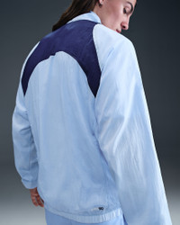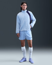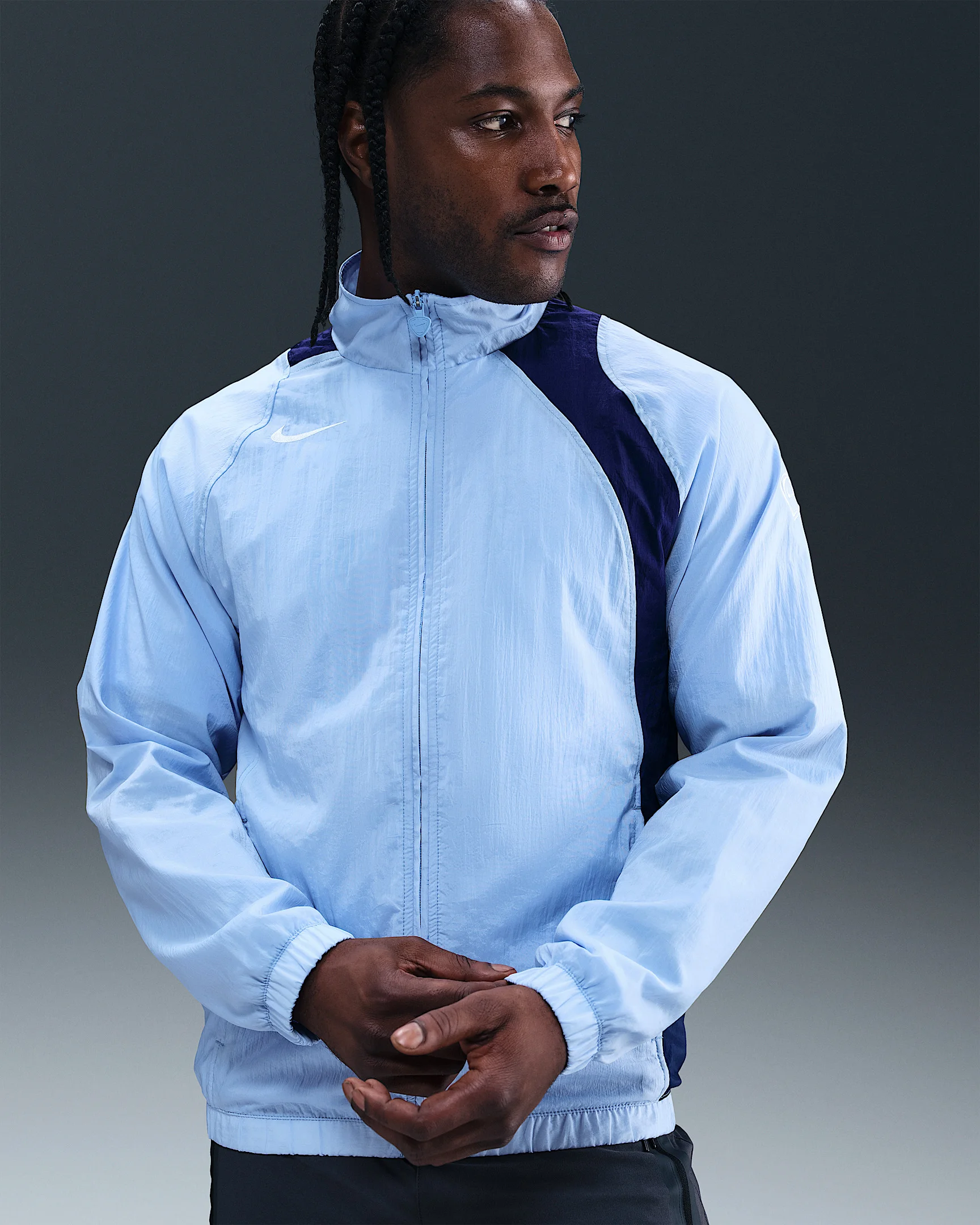 This nylon track jacket pairs the early-2000s energy of Nike’s iconic soccer kits with functional style. Curving, asymmetrical lines with a water-repellent shell and mesh lining create a look that’s game ready in the stands and the streets. Product Details - Zippered pockets - Nike soccer shield logo on left arm - "total90" logo on back - Body: 100% nylon. Lining: 100% polyester. - Machine wash - Imported - Shown: Aluminum/Blue Void/Sail - Style: HQ3391-468 SIZE & FIT Model is wearing size M and is 6′1″185cm Standard fit: easy and traditional