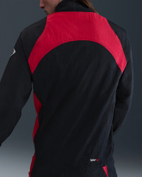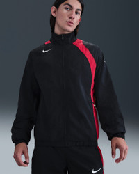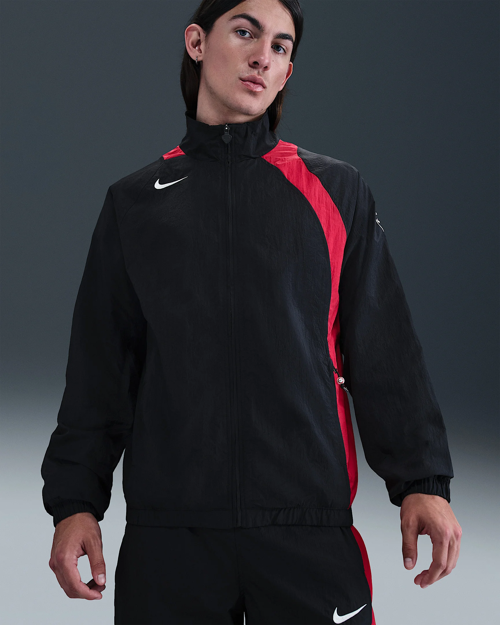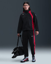 This nylon track jacket pairs the early-2000s energy of Nike’s iconic soccer kits with functional style. Curving, asymmetrical lines with a water-repellent shell and mesh lining create a look that’s game ready in the stands and the streets. Product Details - Zippered pockets - Nike soccer shield logo on left arm - "total90" logo on back - Body: 100% nylon. Lining: 100% polyester. - Machine wash - Imported - Shown: Black/Gym Red/Sail - Style: HQ3391-010 SIZE & FIT Model is wearing size M and is 6′1″185cm Standard fit: easy and traditional