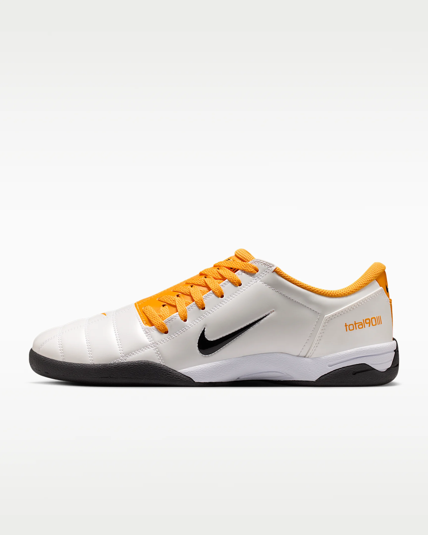 Authentic soccer style, now made for every day. The Total 90 is back, delivering Y2K nostalgia with its original quilted upper and asymmetrical lacing. We swapped the cleated sole for a flat rubber one ready for the streets, and brought back a heritage color palette ready for however you want to wear it. Benefits - Synthetic leather upper features Total 90 logos on each side. - Rubber outsole adds grip and durability. Product Details - Padded collar - Shown: White/University Gold/Black - Style: HQ2851-101