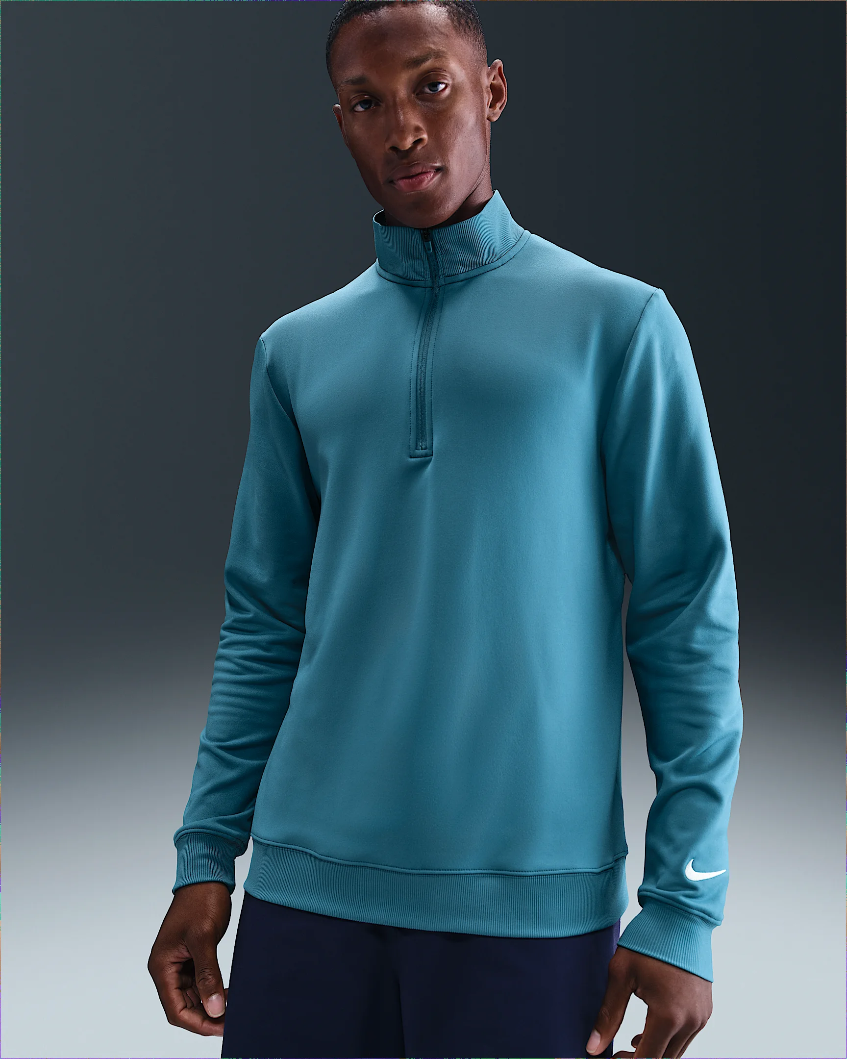 Perfect for adding a quick layer on a breezy course, this 1/2-zip top is made from smooth and lightweight knit. It's built to provide just enough warmth while still keeping a stretchy, movement-friendly fit. Benefits - 1/2-zip design makes the top easy to take on and off. - Smooth knit fabric has a lightweight, stretchy feel that doesn't interfere with your swing. - Built-in back vent provides extra ventilation. Product Details - Ribbed cuffs - Swoosh logo on back neck - Body: 81-89% polyester/11-19% spandex. - Material percentages may vary. Check label for actual content. - Machine wash - Imported - Shown: Smokey Blue/Pale Ivory - Style: FZ7522-006 SIZE & FIT Model is wearing size M and is 5′11″179cm Standard fit: easy and traditional