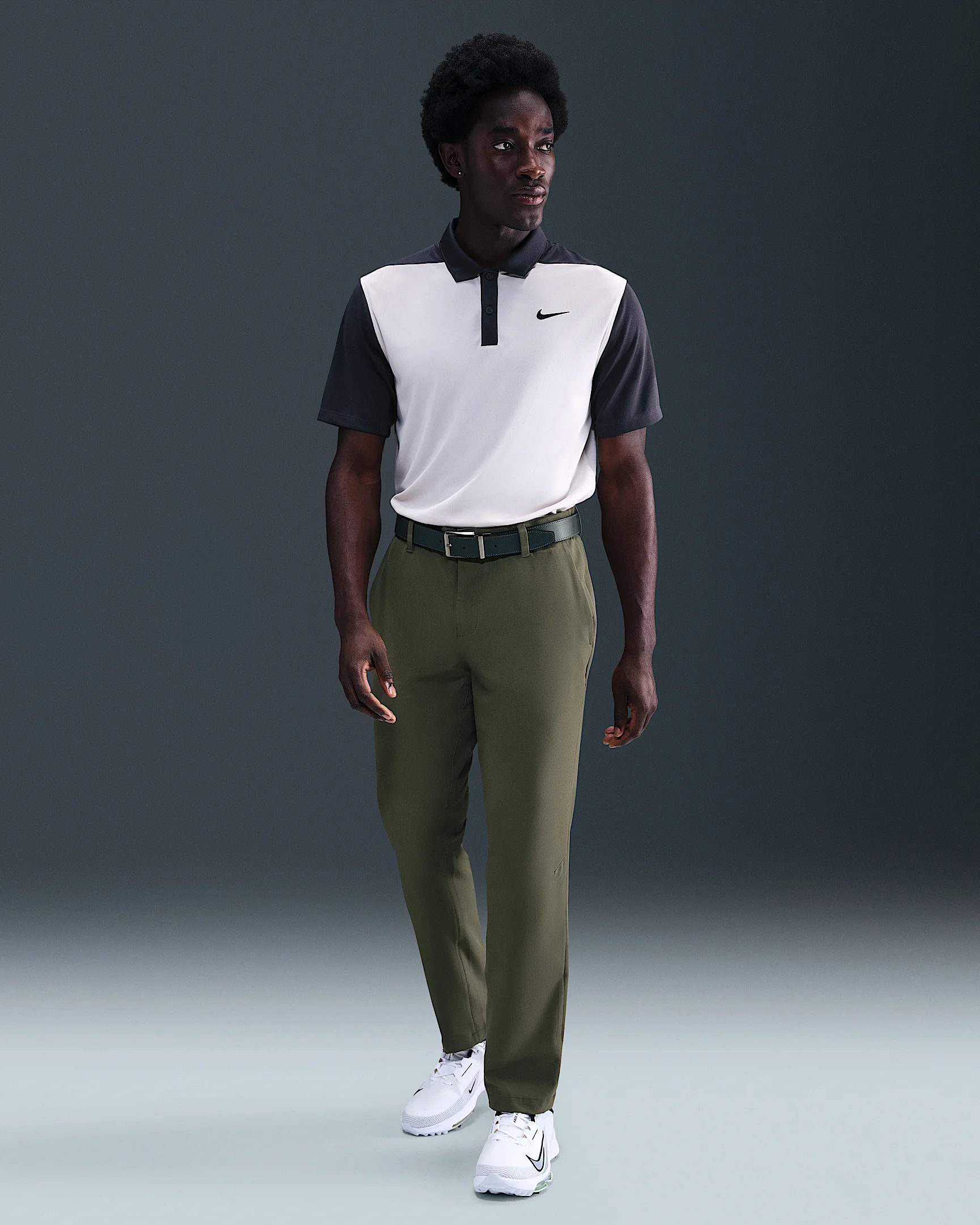 From the range to the course to your plans post-round, the Nike Tour chino pants provide comfort you can take anywhere. The slim fit and fabric with a smooth, stretchy feel help give you the confidence to swing your best. They're water-repellent too, so the rain doesn't cut your round short. Equipped with pockets all around for your tees, scorecard and glove, they help you stay prepared when you're next up on the box. Benefits - Lightweight fabric moves sweat away from your skin for quick evaporation, helping you stay dry and comfortable. - 4-way stretch-woven fabric helps you get the most out of your swing. - Water-repellent finish helps you stay dry in wet conditions. - Elastic waistband with a snap-hook-and-bar closure provides a snug fit. - 4 mesh-lined pockets help store your golf essentials, like a scorecard, pen and yardage book. Product Details - Front zipper - Belt loops - Body: 90% polyester/10% spandex. Pocket bags: 100% polyester - Machine wash - Imported - Shown: Medium Olive/Medium Olive - Style: FD5624-222 SIZE & FIT Sm fit: sleek and tailored