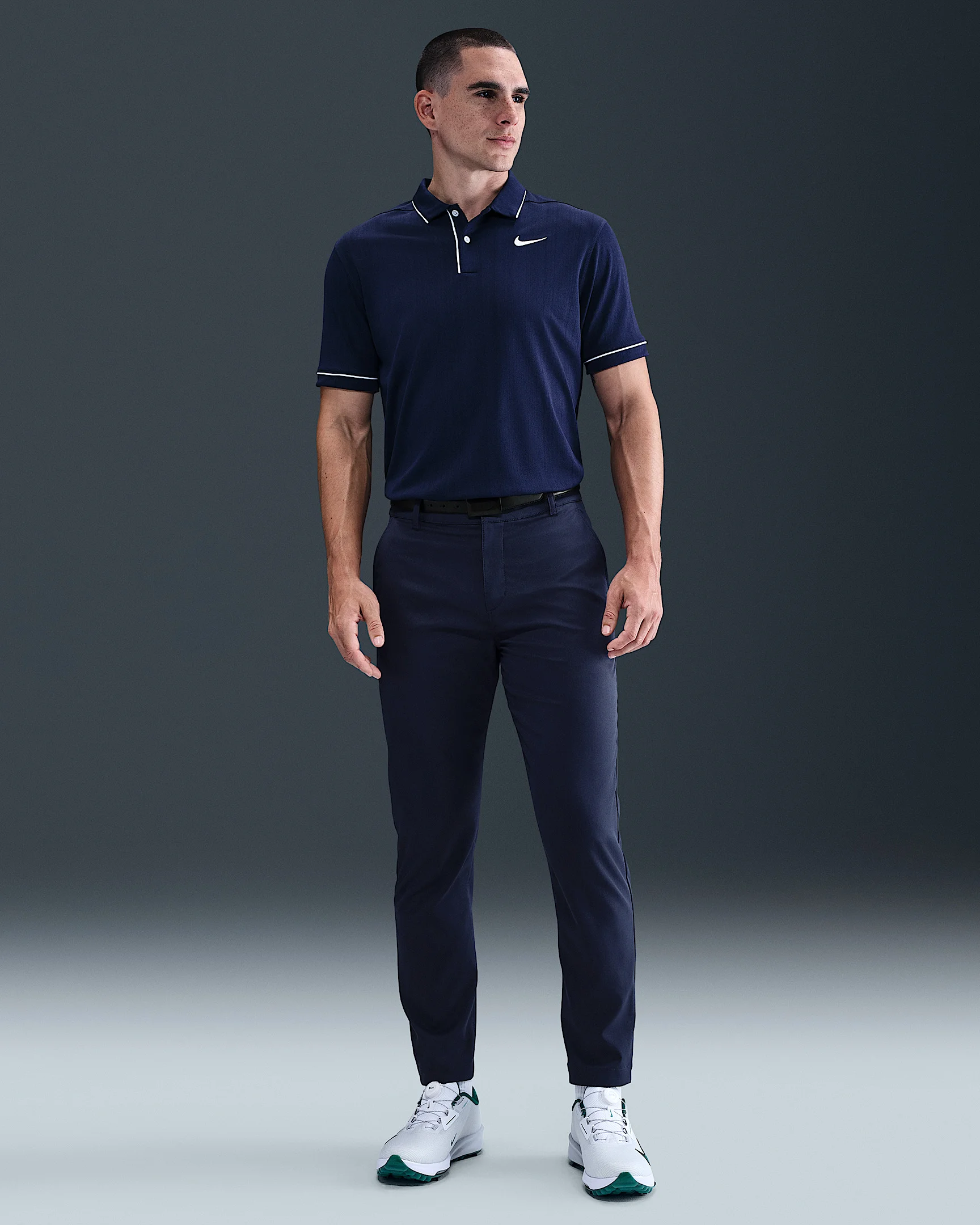 From the range to the course to the clubhouse, the Nike Tour chino pants provide a clean look and comfortable fit you can wear just about anywhere. They're designed to let you feel confident through each swing thanks to their relaxed-yet-streamlined fit and stretchy, sweat-wicking fabric. Got a scorecard, yardage book and tees? There's plenty of pockets for your essentials to make it through all 18. Benefits - Stretch-woven fabric lets you get the most out of your swing. - Water-repellent finish helps shed water in wet conditions. - Elastic waistband with a snap-hook-and-bar closure provides a snug fit. - 4 pockets help store golf essentials like a scorecard, pen and yardage book. Product Details - Front zipper - Body/Pocket bags: 100% polyester - Machine wash - Imported - Shown: Midnight Navy/Black - Style: FD5619-410 SIZE & FIT Male model is wearing size M and is 6'2"188cm Standard fit: easy and traditional