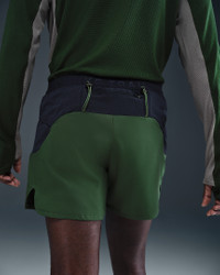 These 5” trail running shorts are built for long-distance journeys in the outdoors. Their lightweight, sweat-wicking outer short is paired with an inner brief for coverage and support. An eight-pocket design, plus special loops to hold hiking poles, is designed to tackle the terrain all the way to the summit. More Benefits - Designed for Trail Running - Length: 5" - Liner: Brief - Fabric: Lightweight woven - Storage: Eight pockets - Waistband: Elastic waistband with drawcord Product Details - Body: 100% polyester. Panels: 80% polyester/20% spandex. Lining: 89% polyester/11% spandex. Mesh: 82% polyester/18% spandex. - Machine wash - Imported - Not intended for use as Personal Protective Equipment (PPE) - Shown: Fir/Obsidian/Ochre/Summit White - Style: HJ3572-323 SIZE & FIT Model is wearing size M and is 6′1″185cm Standard fit: easy and traditional