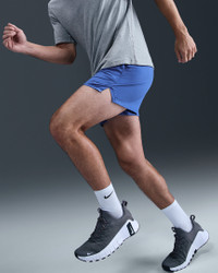 Designed for running, training and yoga, our sweat-wicking Unlimited Shorts were made to do it all. They're here for whatever your workout requires, with stretchy fabric that helps you stay free to move. Plus, a hidden pocket lets you keep your phone close as you bring the heat to the gym or a run. More Benefits - Designed for Running, Yoga and Training - Length: 5" - Liner: Unlined - Fabric: 4-way stretch woven - Storage: Side pockets and hidden back pocket - Waistband: Stay-in-place waistband with convertible interior/exterior drawcord Product Details - Interior key loop - Faux fly - Embroidered Swoosh - Body: 86% polyester/14% spandex. Mesh: 100% polyester. - Machine wash - Imported - Shown: Comet Blue/Black/Comet Blue - Style: DV9336-411 SIZE & FIT Model is wearing size M and is 6′2″188cm Standard fit: easy and traditional