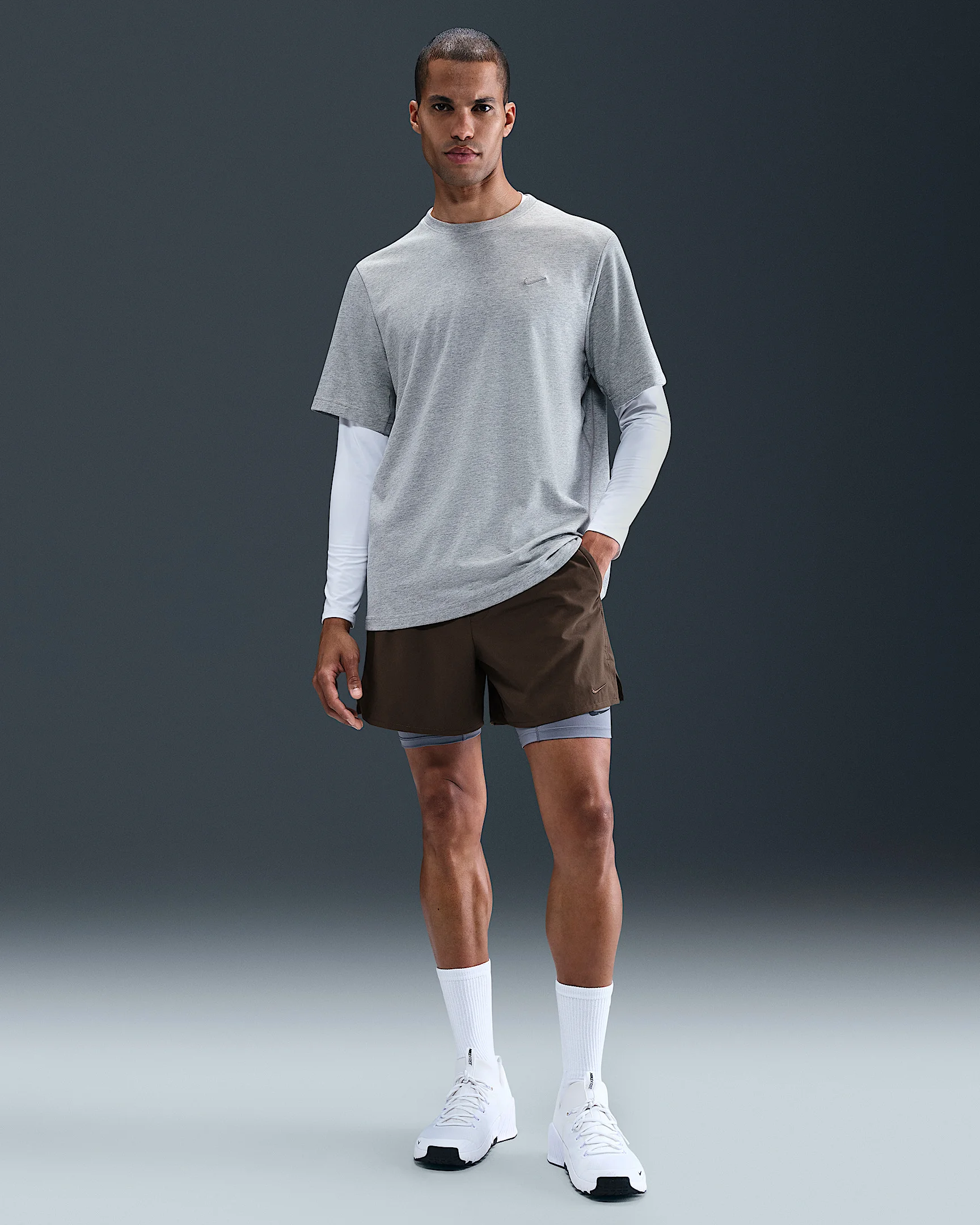 Designed for running, training and yoga, our sweat-wicking Unlimited Shorts were made to do it all. They're here for whatever your workout requires, with stretchy fabric that helps you stay free to move. Plus, a hidden pocket lets you keep your phone close as you bring the heat to the gym or a run. More Benefits - Designed for Running, Yoga and Training - Length: 5" - Liner: Unlined - Fabric: 4-way stretch woven - Storage: Side pockets and hidden back pocket - Waistband: Stay-in-place waistband with convertible interior/exterior drawcord Product Details - Interior key loop - Faux fly - Embroidered Swoosh - Body: 86% polyester/14% spandex. Mesh: 100% polyester. - Machine wash - Imported - Shown: Baroque Brown/Black/Baroque Brown - Style: DV9336-237 SIZE & FIT Model is wearing size M and is 6′2″187cm Standard fit: easy and traditional
