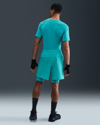 Designed for running, training and yoga, our sweat-wicking Unlimited Shorts were made to do it all. They're here for whatever your workout requires, with a smooth, stretchy outer layer that helps you stay free to move. A tight inner layer adds extra support during your routine. Plus, a hidden pocket lets you keep your phone close as you bring the heat to the gym or a run. More Benefits - Designed for Running, Yoga and Training - Length: 7" - Liner: 2-in-1 - Fabric: 4-way stretch woven - Storage: Side pockets, hidden back pocket and drop-in phone pocket - Waistband: Stay-in-place waistband with convertible interior/exterior drawcord Product Details - Interior key loop - Faux fly - Embroidered Swoosh - Body: 86% polyester/14% spandex. Panels: 89% polyester/11% spandex. Pocket Bags: 100% polyester. - Machine wash - Imported - Shown: Dusty Cactus/Dusty Cactus/Black/Dusty Cactus - Style: DV9334-345 SIZE & FIT Model is wearing size M and is 6′2″187cm Standard fit: easy and traditional