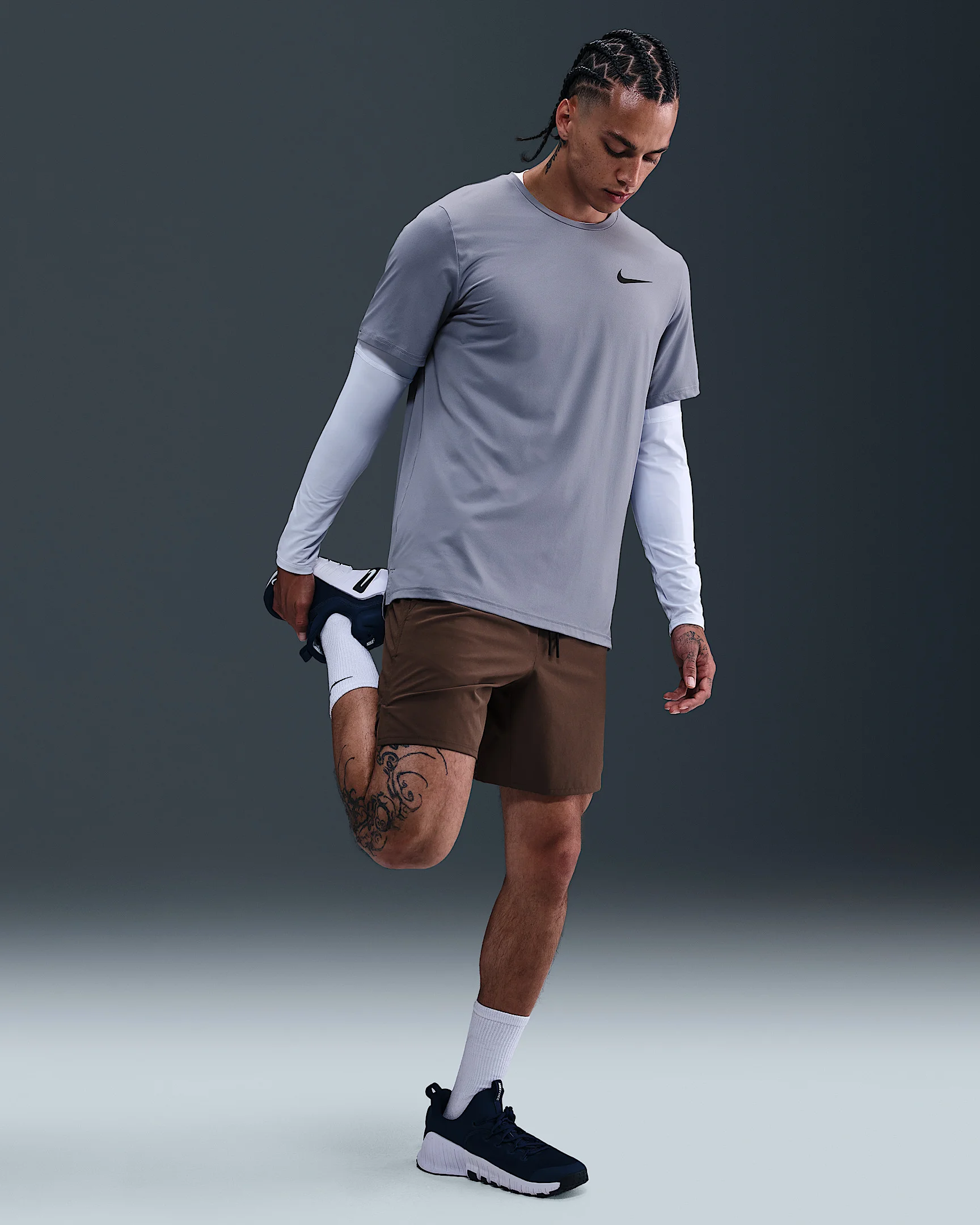 Built for running, training and yoga, our Unlimited collection helps keep you moving throughout the year, thanks to its premium materials and innovative features. These shorts are here for whatever your workout requires, with stretchy fabric that won't get in the way of movement. Plus, a hidden pocket lets you keep your phone close as you bring the heat to the gym or a run. More Benefits - Designed for Running, Yoga and Training - Length: 7" - Liner: Unlined - Fabric: 4-way stretch woven - Storage: Side pockets and hidden back pocket - Waistband: Stay-in-place waistband with convertible interior/exterior drawcord Product Details - This product provides UVA and UVB protection from the sun only in the areas covered by the garment. To protect exposed areas, the use of good quality sunscreen is recommended. - Interior key loop - Faux fly - Embroidered Swoosh - Body: 86% polyester/14% spandex. Mesh: 100% polyester. - Machine wash - Imported - Shown: Baroque Brown/Black/Baroque Brown - Style: DV9340-237 SIZE & FIT Model is wearing size M and is 6′0″183cm Standard fit: easy and traditional Fits large; we recommend ordering a size down