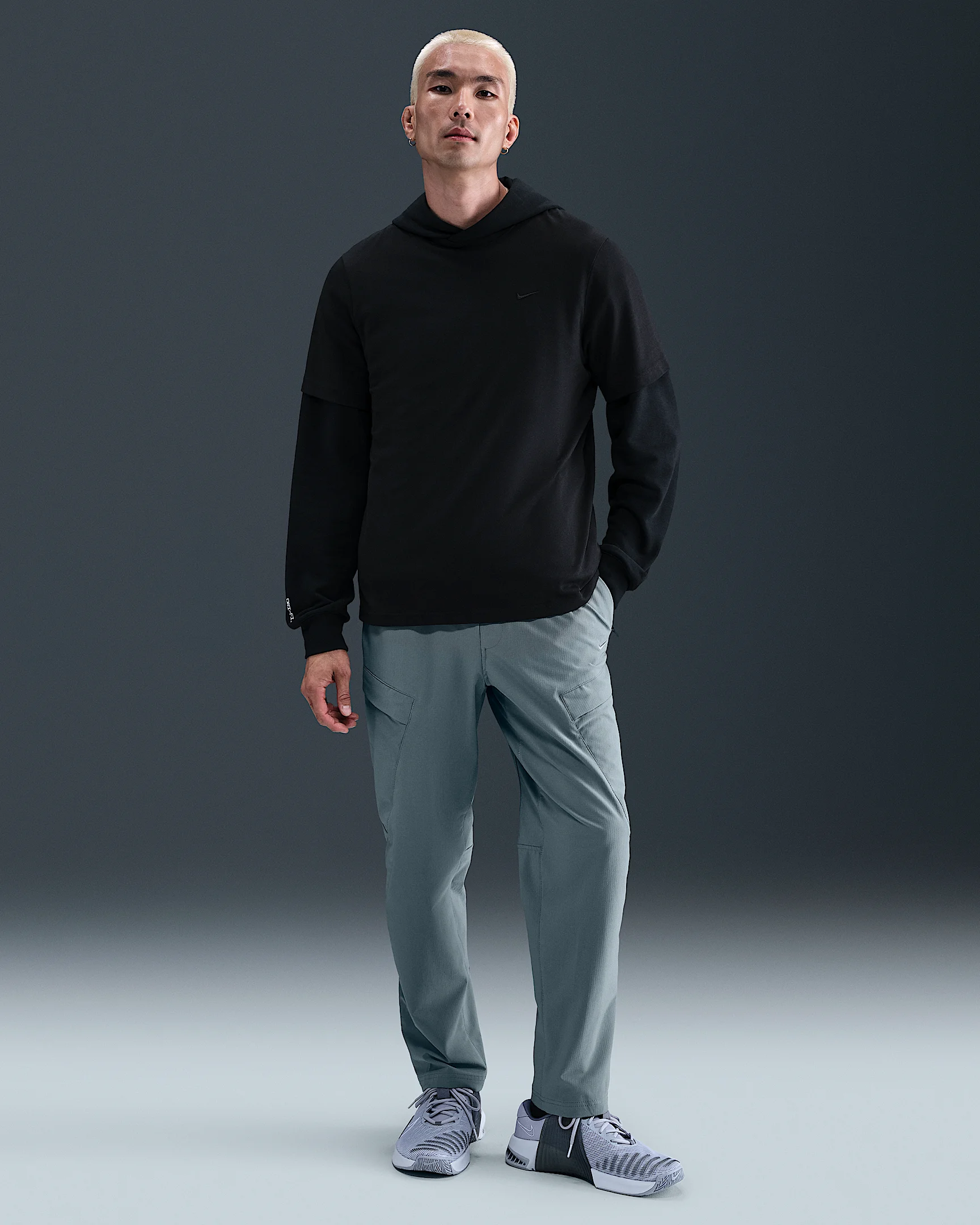 Designed for running, training and yoga, the Unlimited cargo pants are made for the active lifestyle. Four-way stretch woven fabric and sweat-wicking Dri-FIT technology help you stay comfortable while you move. Cargo pockets keep your essentials close throughout your workout. Benefits - Standard fit is relaxed through the seat and thighs. - Nike Dri-FIT technology moves sweat away from your skin for quicker evaporation, helping you stay dry and comfortable. - Storage includes side pockets, a zippered back pocket and side cargo pockets. - Elastic waistband with drawcord provides a secure fit without digging in. - Woven fabric stretches in all directions for easy movement. Product Details - Body: 92% polyester/8% spandex. Pocket bags: 100% polyester. - Machine wash - Imported - Shown: Smoke Grey/Black/Smoke Grey - Style: HJ3154-084 SIZE & FIT Standard fit: easy and traditional