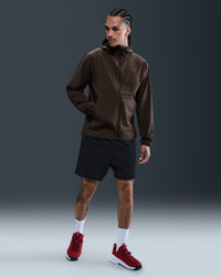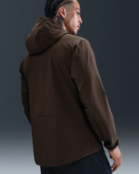 Built for running, training and yoga, our Unlimited collection helps keep you moving throughout the year, thanks to its premium materials and innovative features. This breathable jacket is built around super stretchy fabric that moves with you from box jumps to back bends. Durable water-repellent coating helps keep you prepared for unexpected showers. Plus, it neatly packs down into a slim, built-in pouch for maximum convenience and space saving in your gym bag. Benefits - Hood with drawcord lets you cinch up your perfect fit. - Front pockets give easy-to-reach storage and help your hands stay warm. - Repel sheds rain and moves sweat away from your skin. - Full-zip design helps you easily change in and out of the jacket. - Midweight woven fabric has plenty of stretch through your full range of motion. Product Details - 85% polyester/15% spandex - Machine wash - Imported - Not intended for use as Personal Protective Equipment (PPE) - Shown: Baroque Brown/Black/Baroque Brown - Style: FB7551-237 SIZE & FIT Model is wearing size M and is 6′0″183cm Standard fit: easy and traditional
