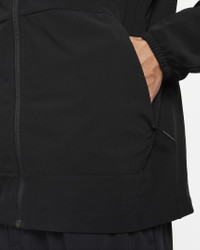 Built for running, training and yoga, our Unlimited collection helps keep you moving throughout the year, thanks to its premium materials and innovative features. This breathable jacket is built around super stretchy fabric that moves with you from box jumps to back bends. Durable water-repellent coating helps keep you prepared for unexpected showers. Plus, it neatly packs down into a slim, built-in pouch for maximum convenience and space saving in your gym bag. Benefits - Hood with drawcord lets you cinch up your perfect fit. - Front pockets give easy-to-reach storage and help your hands stay warm. - Repel sheds rain and moves sweat away from your skin. - Full-zip design helps you easily change in and out of the jacket. - Midweight woven fabric has plenty of stretch through your full range of motion. Product Details - 85% polyester/15% spandex - Machine wash - Imported - Not intended for use as Personal Protective Equipment (PPE) - Shown: Black/Black/Black - Style: FB7551-010 SIZE & FIT Model is wearing size M and is 6′1″185cm Standard fit: easy and traditional