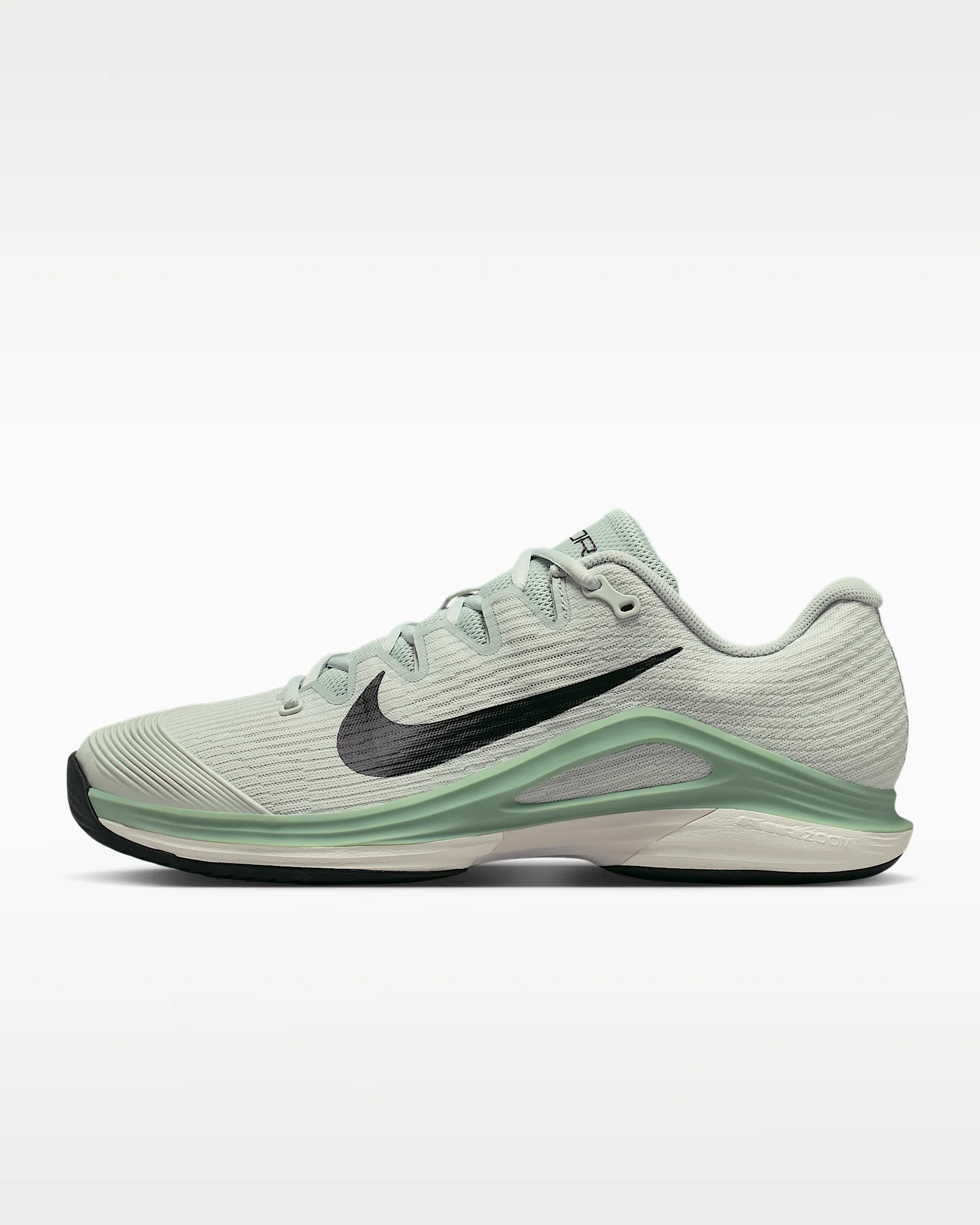 Get to every single ball with blistering speed in the Vapor 12. With a reworked upper and traction pattern, it's lighter and more responsive than the 11. And we brought back Air Zoom cushioning, so you can always be on the attack. More Benefits - Full midfoot fit band allows you to pull the laces tighter to enhance the fit and enable faster cuts. - Midsole foam in between the plastic and rubber, which wasn’t on the Vapor 11, helps keep you light on your feet. Product Details - Designed for wear on hard court surfaces - Cushioned insole - Shown: Light Silver/Steam/White/Black - Style: FV5552-003
