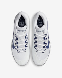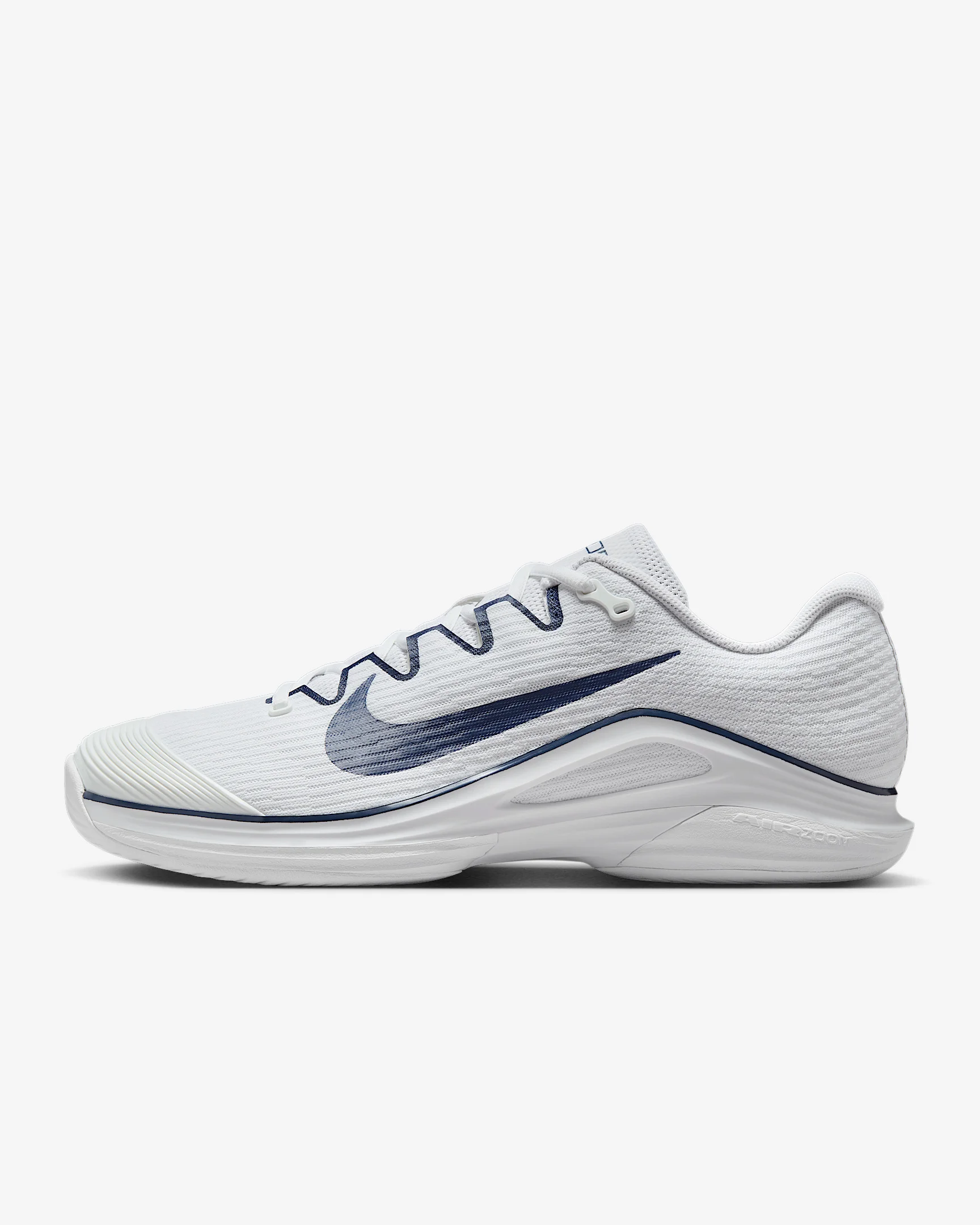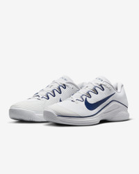 Get to every single ball with blistering speed in the Vapor 12. With a reworked upper and traction pattern, it's lighter and more responsive than the 11. And we brought back Air Zoom cushioning, so you can always be on the attack. More Benefits - Full midfoot fit band allows you to pull the laces tighter to enhance the fit and enable fast cuts. - Midsole foam in between the plastic and rubber, which wasn’t on the Vapor 11, helps keep you light on your feet. Product Details - Designed for wear on hard court surfaces - Cushioned sockliner - Shown: White/Midnight Navy/White - Style: IB7168-100