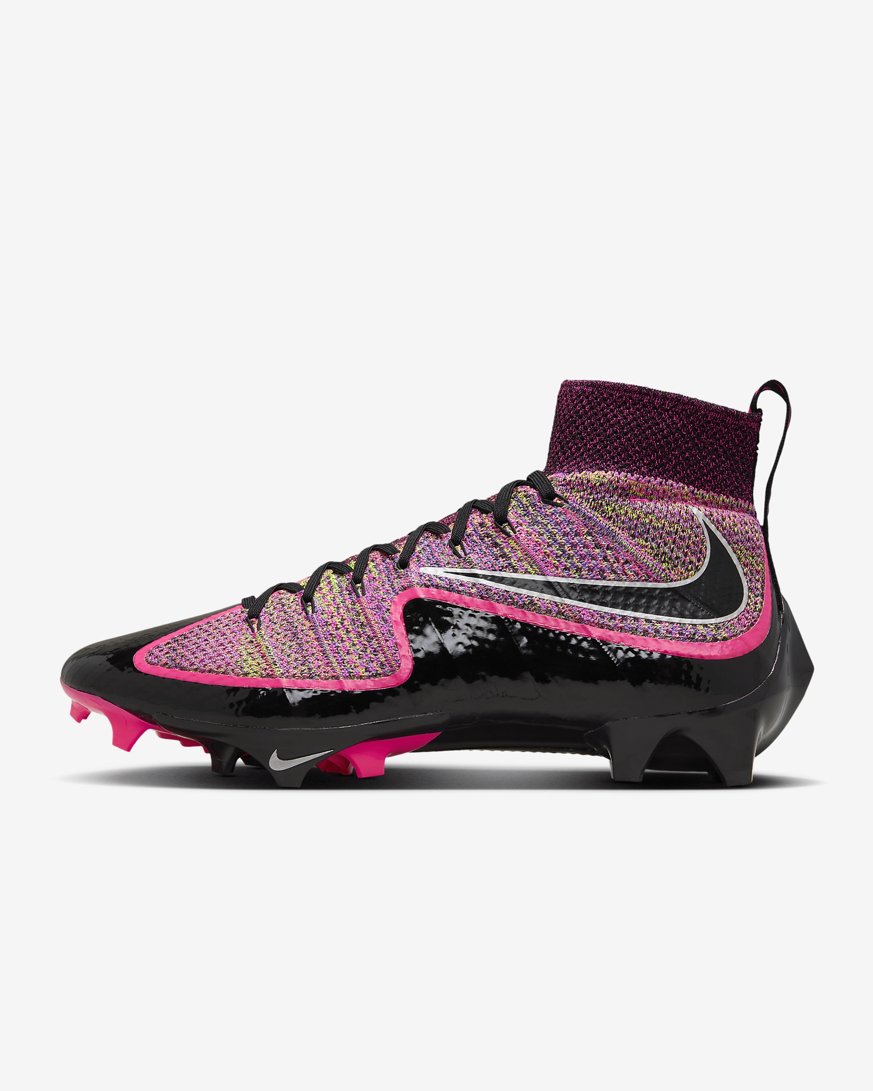 Take one to the house in the Nike Vapor Edge Untouchable. It gets its cues from the original Untouchable that took the football world by storm in 2015 and modernizes it with our greatest innovations, including a full Flyknit upper and a quick Vapor Edge 360 plate. Product Details - Shown: Black/Hyper Pink/Metallic Silver - Style: FQ0235-002