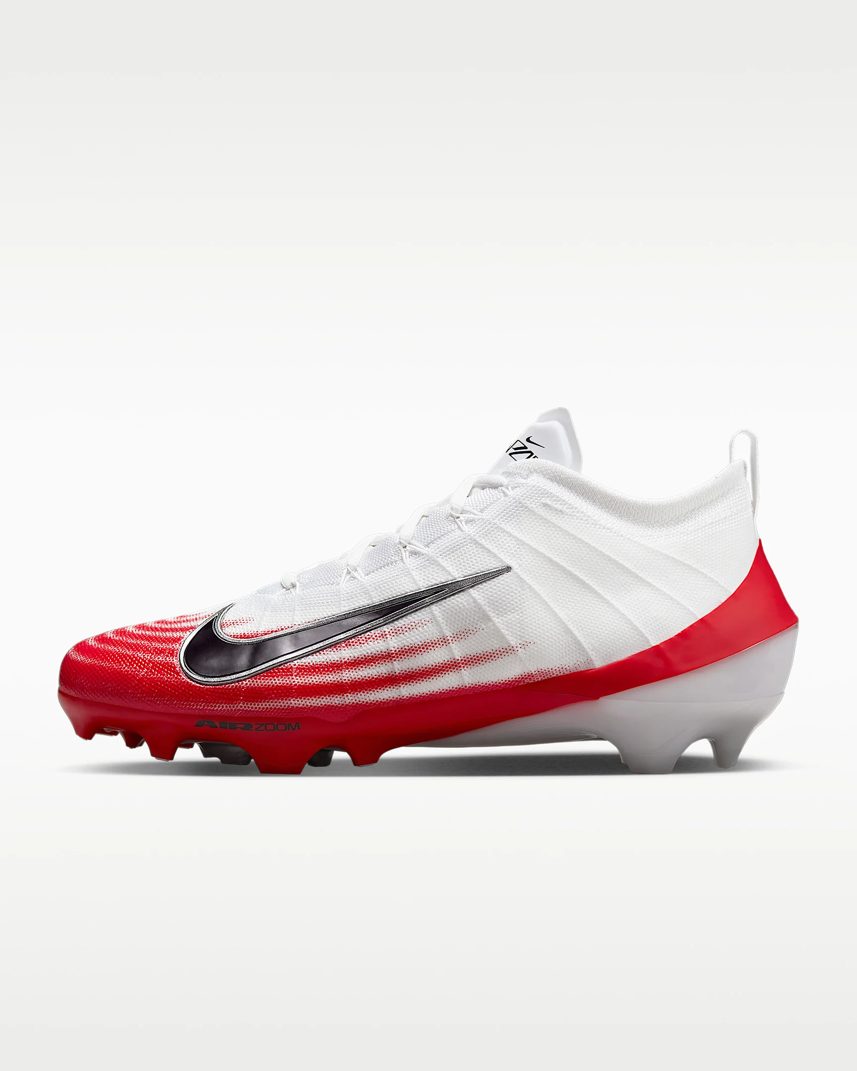 With an upper so light it practically disappears on your foot and Air Zoom cushioning so responsive you’ll burst off the line of scrimmage, the Nike Vapor Elite helps you take over the game with indefensible speed. Benefits - Lightweight Flyknit improves multidirectional containment and breathability. - Responsive forefoot Air Zoom unit sits on top of the plate, offering extra pop and speed when making sudden movements. - Vapor plate is lightweight, yet structurally strong. - Built-in cables combine with the Flyknit to help secure your laces even tighter. - Thin layer over Flyknit provides durability. - Wide stud placement ensures optimal multidirectional traction. - Molded plastic around the heel offers stability for your ankle and Achilles. Product Details - Shown: White/University Red/Black - Style: FB3288-102