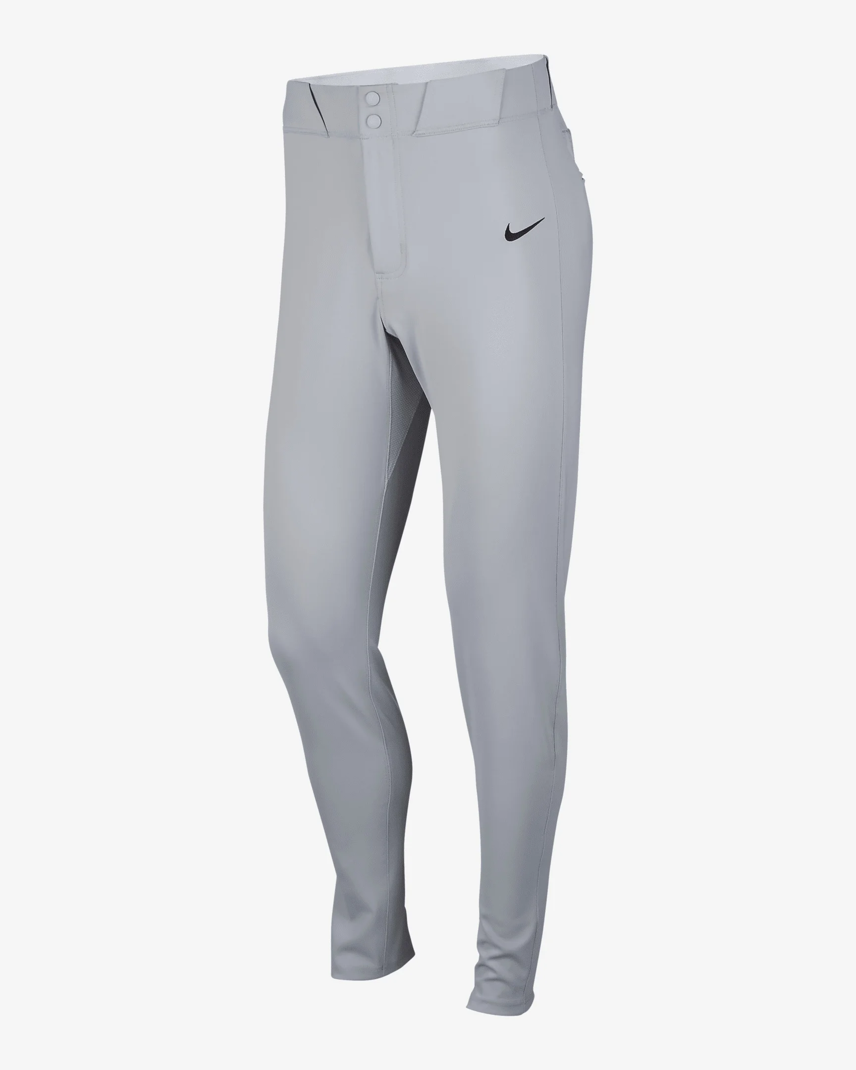 Feel pro-ready with these durable, movement-friendly baseball pants. They feature sweat-wicking Dri-FIT ADV technology and are lined with grip material around the waistband and cuffs to help keep your uniform in place. Benefits - Nike Dri-FIT ADV levels up our sweat-wicking technology with advanced cooling and zones of breathability to help you stay dry and comfortable. - Lightweight, stretchy fabric lets you move naturally as you sprint, steal and slide. Durable construction stands up to all-out play. - Elastic waistband is lined with gripping material that helps keep the pants in place. - Offset snaps reduce bulk under your belt buckle. Product Details - Back pockets - Belt loops - Front zipper - Body: 95% polyester/5% spandex. Panel/Pocket bags: 100% polyester. - Machine wash - Imported - Shown: Wolf Grey/Black - Style: FZ1377-012 SIZE & FIT Sm fit: sleek and tailored
