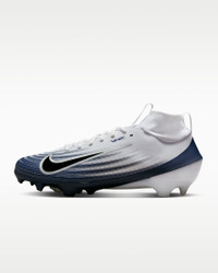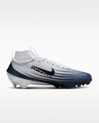 With Air Zoom cushioning so responsive you’ll burst off the line of scrimmage, the Nike Vapor Pro 1 is designed to help you take your speed to the next level. Benefits - Mesh combines with inner sleeve to provide a breathable, snug fit. - Forefoot Air Zoom unit stitched to the upper offers unreal responsiveness when making sudden, swift moves. - Vapor plate is lightweight, yet structurally strong. - Wide stud placement ensures optimal multidirectional traction. - Molded plastic around the heel offers stability for your ankle and Achilles. Product Details - Shown: White/Midnight Navy/Metallic Silver/Black - Style: HM8850-104