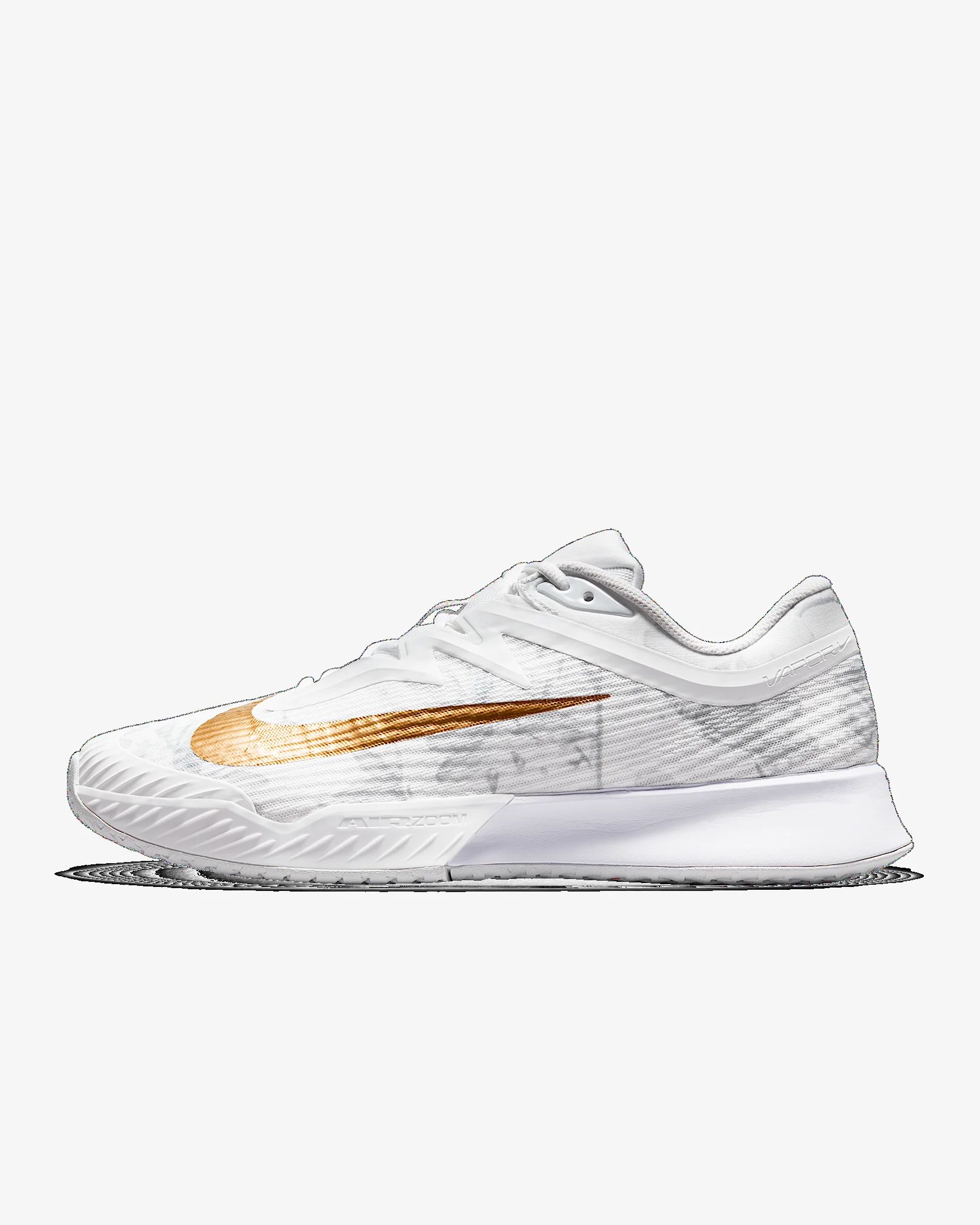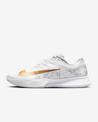 Opt for opulence and an abundance of spoils in this special Vapor 3. Rich, gold Swoosh designs and a magnolia print along the upper highlight a design made for those who play in the high life. With springy Air Zoom cushioning and a new rubber compound that makes the shoe lighter than previous Vapors, it’s primed to last to match point. Product Details - Designed for wear on hard court surfaces - Durable, breathable mesh on upper - Rubber toe tip - Shown: White/Pure Platinum/Metallic Gold - Style: HV1485-100