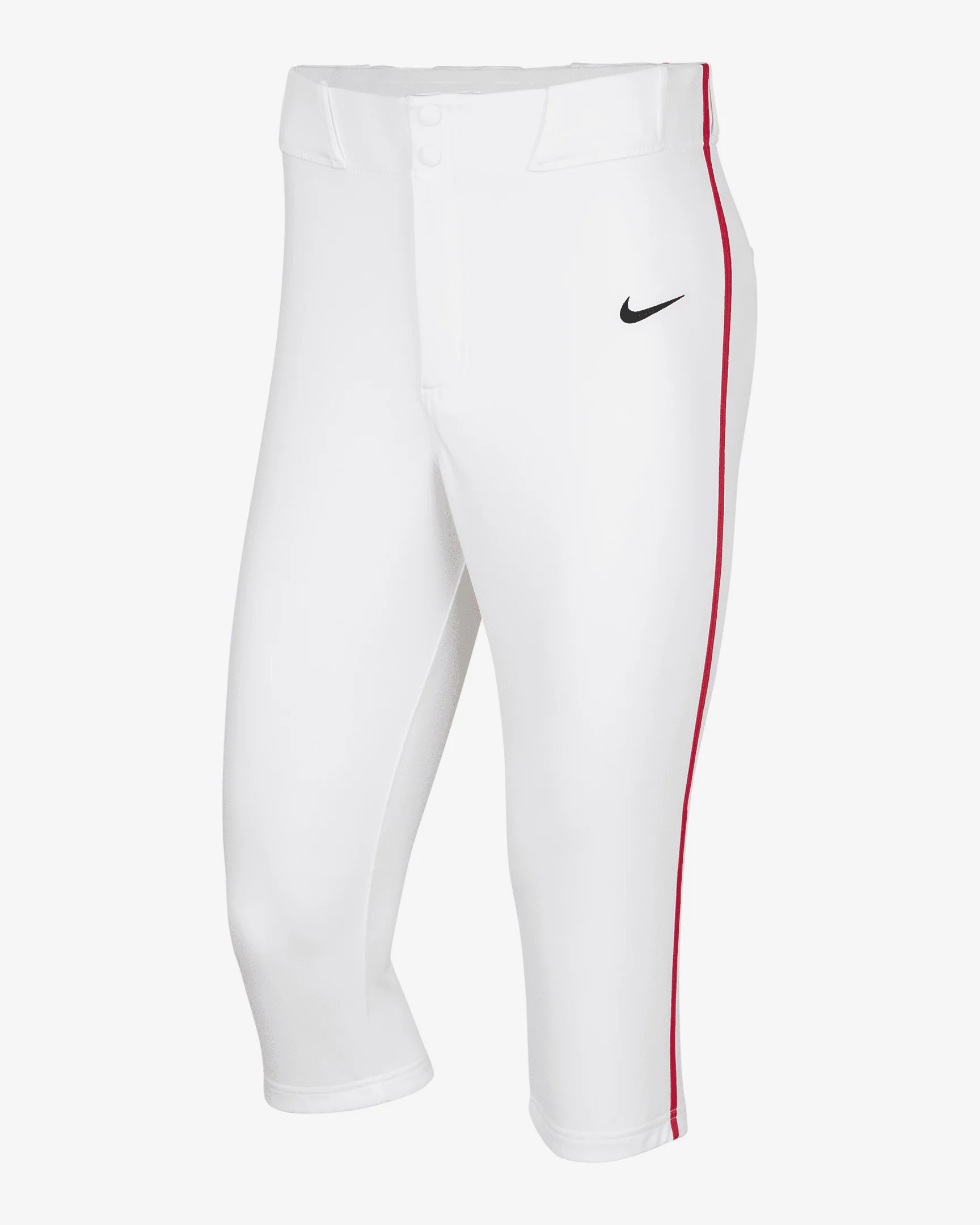 The Nike Vapor Select pants help you during the heat of competition with breathable knit fabric and a slim fit. Gripper at the bottom hem is designed to help reduce distractions while the grip inside the waist helps keep the uniform in place during all-out play. Product Details - Belt loops - Elastic waistband - Front zipper - Back pockets - Snap-button closure - 100% polyester - Machine wash - Imported - Shown: White/University Red/Black - Style: FZ1375-102 SIZE & FIT Sm fit: sleek and tailored