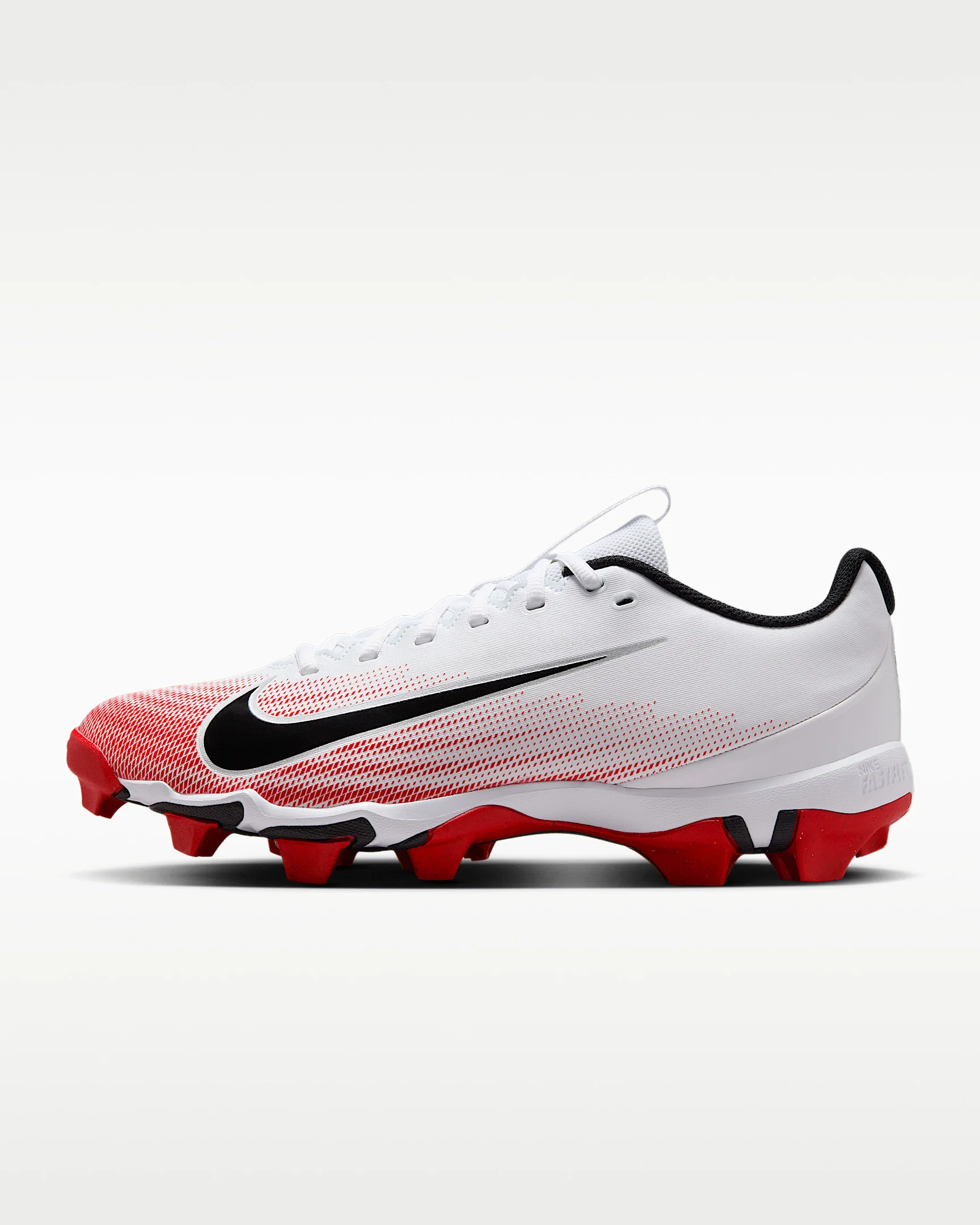 Stay one step ahead of your opponent in the Vapor Shark 3. The outsole has Nike Fastflex technology to help you move with ease while hitting the gas and changing direction on a dime for all those game-changing plays. Benefits - Nike Fastflex technology with rubber studs creates flexibility and traction for bursts of speed, quick cuts and sudden stops. - Synthetic leather on the upper is durable and easy to clean. Product Details - Shown: White/University Red/Black - Style: FB3304-102