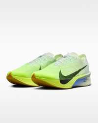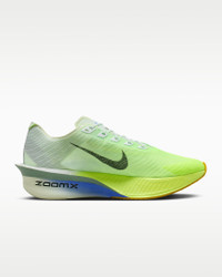 The Vaporfly 4 is a lean, mean, mile-eating machine. We trimmed weight in the midsole, outsole and upper from the Vaporfly 3 without sacrificing performance. The result is a lighter, more propulsive all-around racing shoe that’s trusted from the mile to the marathon. More Benefits - Lighter upper, midsole, outsole - Higher plate angle - Lower heel-to-toe drop Product Details - Weight: Approx. 190g/6.7oz (Men's US 10) - Heel-to-toe drop: 6mm - Shown: Barely Green/Volt Tint/Sapphire/Black Spruce - Style: HF6414-300