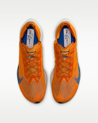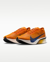 The Vaporfly 4 is a lean, mean, mile-eating machine. We trimmed weight in the midsole, outsole and upper from the Vaporfly 3 without sacrificing performance. The result is a lighter, more propulsive all-around racing shoe that’s trusted from the mile to the marathon. More Benefits - Lighter upper, midsole, outsole - Higher plate angle - Lower heel-to-toe drop Product Details - Weight: Approx. 190g/6.7oz (Men's US 10) - Heel-to-toe drop: 6mm - Shown: Orange Peel/Black/Sail/Team Royal - Style: IO7549-833
