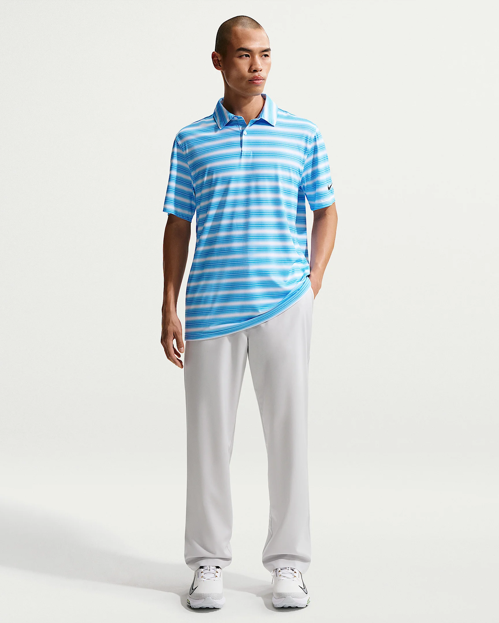 Keep comfort in your back pocket with these lightweight, breathable golf pants. Made with sweat-wicking tech, the stretchy woven fabric helps keep you dry and comfortable whether you're walking the course or riding. The stretch waistband is lined with gripper tape for a snug fit that helps tucked shirts stay put. Benefits - Four-way stretch fabric allows you to move without restriction. - Nike Dri-FIT technology moves sweat away from your skin for quicker evaporation, helping you stay dry and comfortable. - Deep pockets are designed to hold yardage books, phones and keep tees and ball markers in place—even when you're riding. - Woven pocket lining helps prevent tees, ball markers and pencils from getting caught. Product Details - Body: 100% polyester. Pockets: 80% polyester/20% cotton. - Front zipper and snap-button closure - Hand and back pockets - Belt loops - Machine wash - Imported - Shown: Photon Dust/Wolf Grey/Photon Dust - Style: IQ3877-025 SIZE & FIT Model is wearing size M and is 5'11"180cm Standard fit: easy and traditional